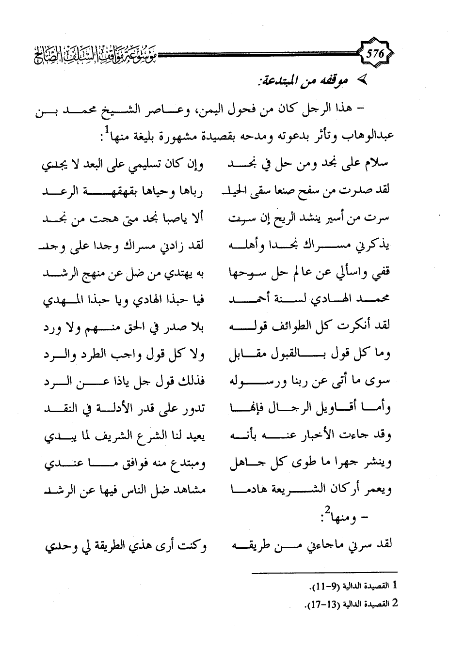 - هذا الرجل كان من فحول اليمن، وعاصر الشيخ محمد بن عبد الوهاب وتأثر بدعوته ومدحه بقصيدة مشهورة بليغة منها (¬1):