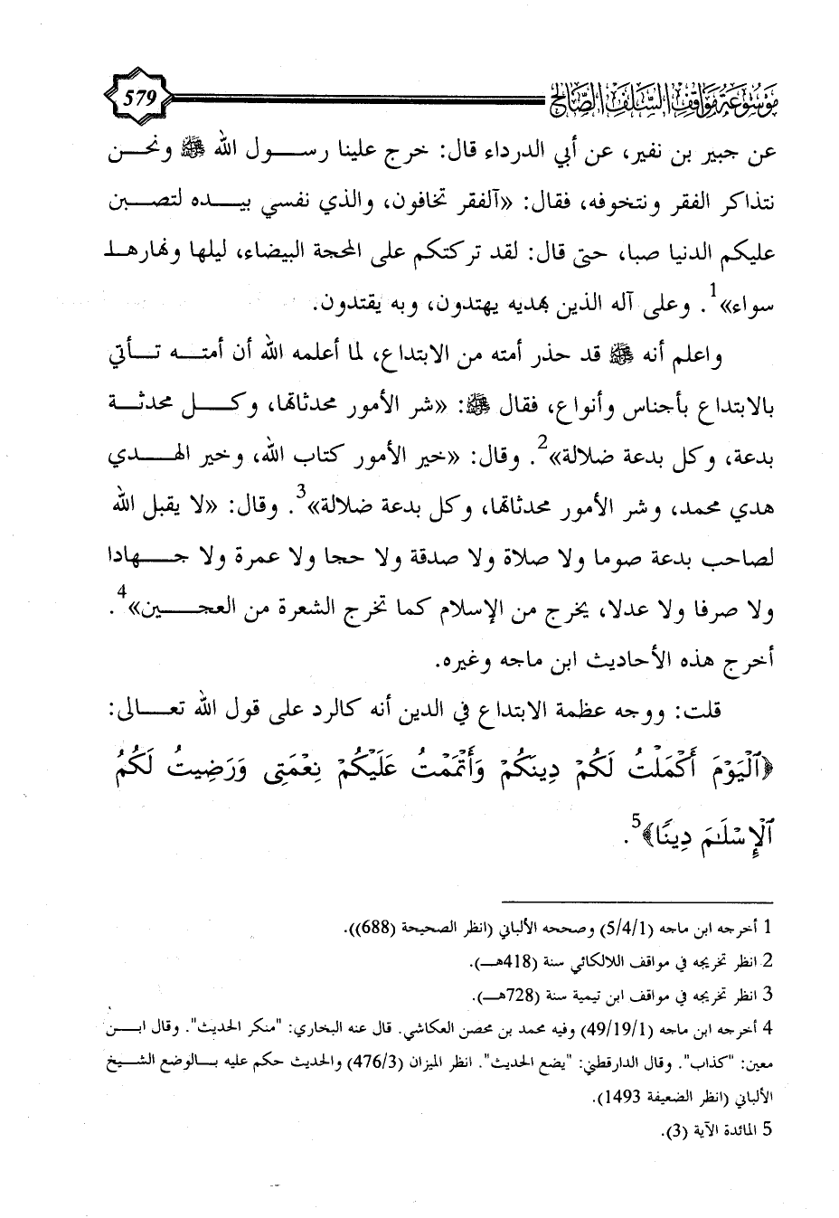قلت: ووجه عظمة الابتداع في الدين أنه كالرد على قول الله تعالى: {الْيَوْمَ أَكْمَلْتُ لَكُمْ دِينَكُمْ وَأَتْمَمْتُ عَلَيْكُمْ نِعْمَتِي وَرَضِيتُ لَكُمُ الْإِسْلَامَ دِينًا} (¬5).