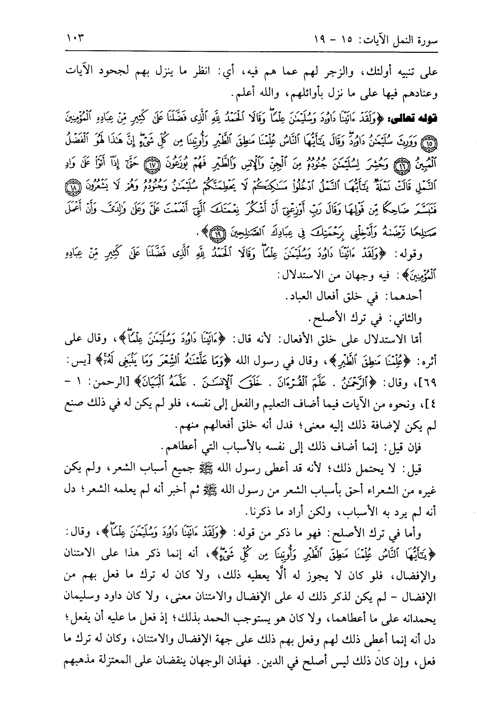 وقوله: (وَلَقَدْ آتَيْنَا دَاوُودَ وَسُلَيْمَانَ عِلْمًا وَقَالَا الْحَمْدُ لِلَّهِ الَّذِي فَضَّلَنَا عَلَى كَثِيرٍ مِنْ عِبَادِهِ الْمُؤْمِنِينَ): فيه وجهان من الاستدلال: