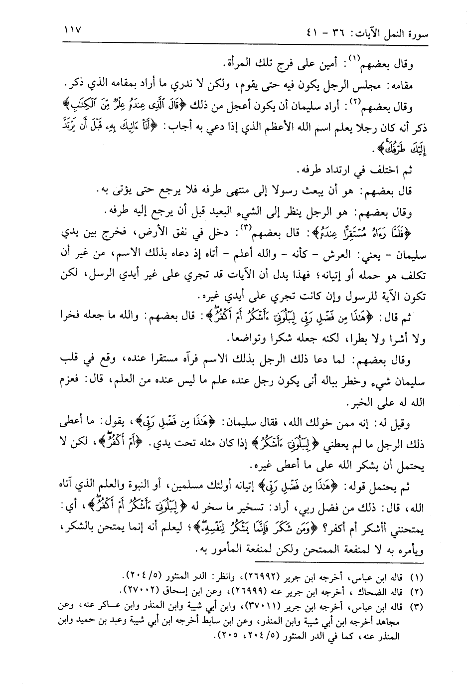 وقيل له: إنه ممن خولك اللَّه، فقال سليمان: (هَذَا مِنْ فَضْلِ رَبِّي)، يقول: ما أعطى ذلك الرجل ما لم يعطني (لِيَبْلُوَنِي أَأَشْكُرُ) إذا كان مثله تحت يدي. (أَمْ أَكْفُرُ)، لكن لا يحتمل أن يشكر اللَّه على ما أعطى غيره.
