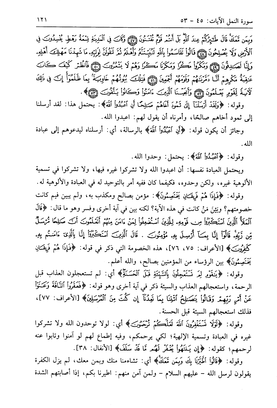 وقوله: (وَلَقَدْ أَرْسَلْنَا إِلَى ثَمُودَ أَخَاهُمْ صَالِحًا أَنِ اعْبُدُوا اللَّهَ (45) يحتمل هذا: لقد أرسلنا إلى ثمود أخاهم صالحا، وأمرناه أن يقول لهم: اعبدوا اللَّه.