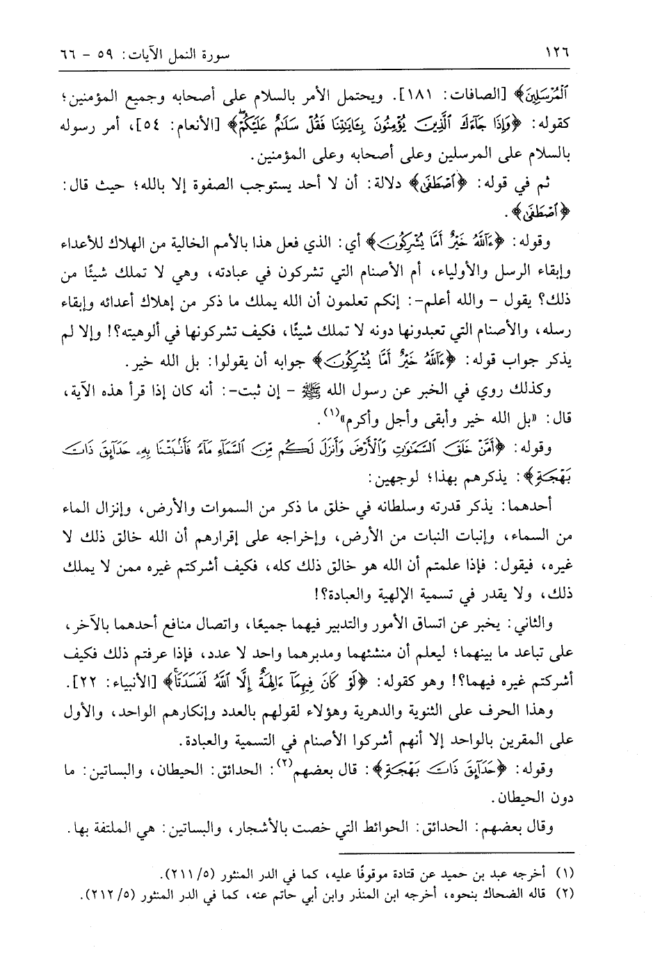 وقوله: (حَدَائِقَ ذَاتَ بَهْجَةٍ): قَالَ بَعْضُهُمْ: الحدائق: الحيطان، والبساتين: ما دون الحيطان.
