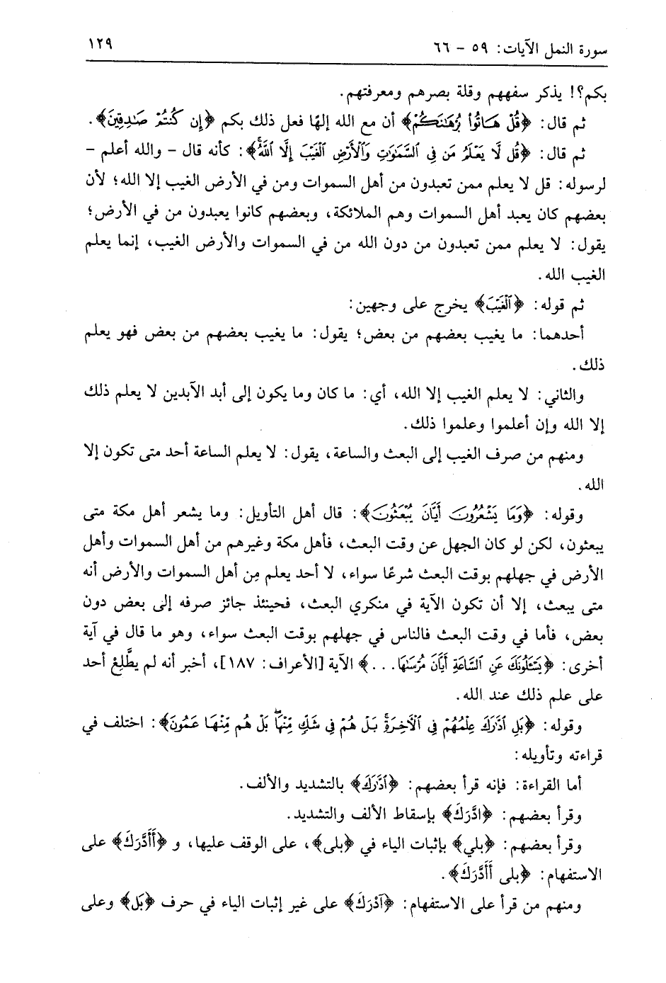 وقوله: (بَلِ ادَّارَكَ عِلْمُهُمْ فِي الْآخِرَةِ بَلْ هُمْ فِي شَكٍّ مِنْهَا بَلْ هُمْ مِنْهَا عَمُونَ (66) اختلف في قراءته وتأويله: