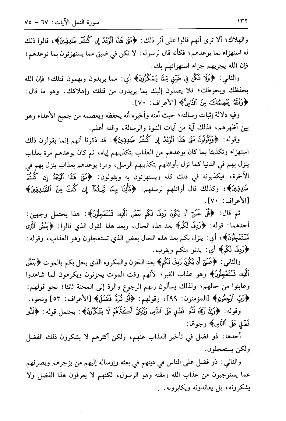 وقوله: (وَإِنَّ رَبَّكَ لَذُو فَضْلٍ عَلَى النَّاسِ وَلَكِنَّ أَكْثَرَهُمْ لَا يَشْكُرُونَ (73) يحتمل قوله: (لَذُو فَضْلٍ عَلَى النَّاسِ) وجوهًا: