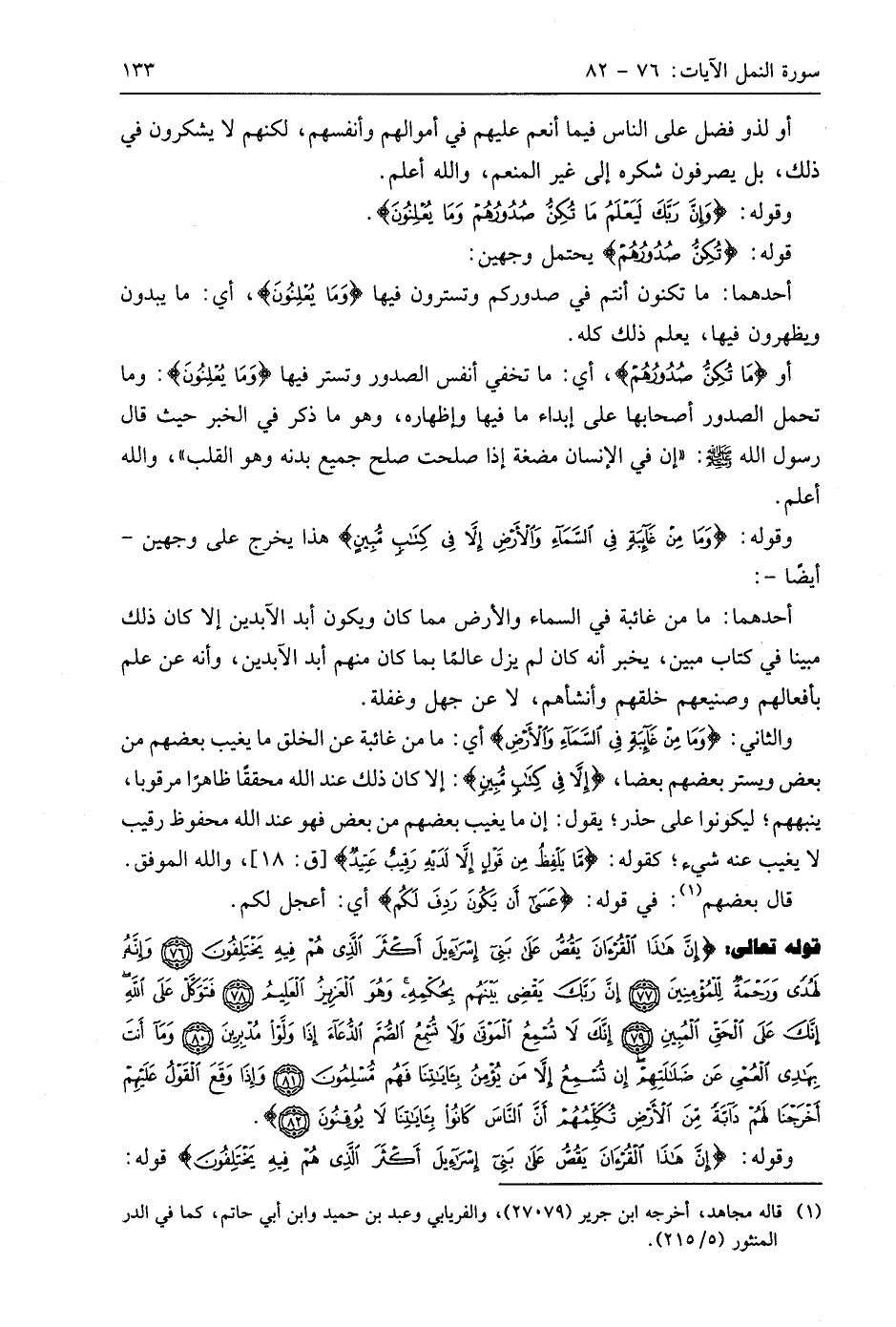 وقوله: (وَإِنَّ رَبَّكَ لَيَعْلَمُ مَا تُكِنُّ صُدُورُهُمْ وَمَا يُعْلِنُونَ (74)