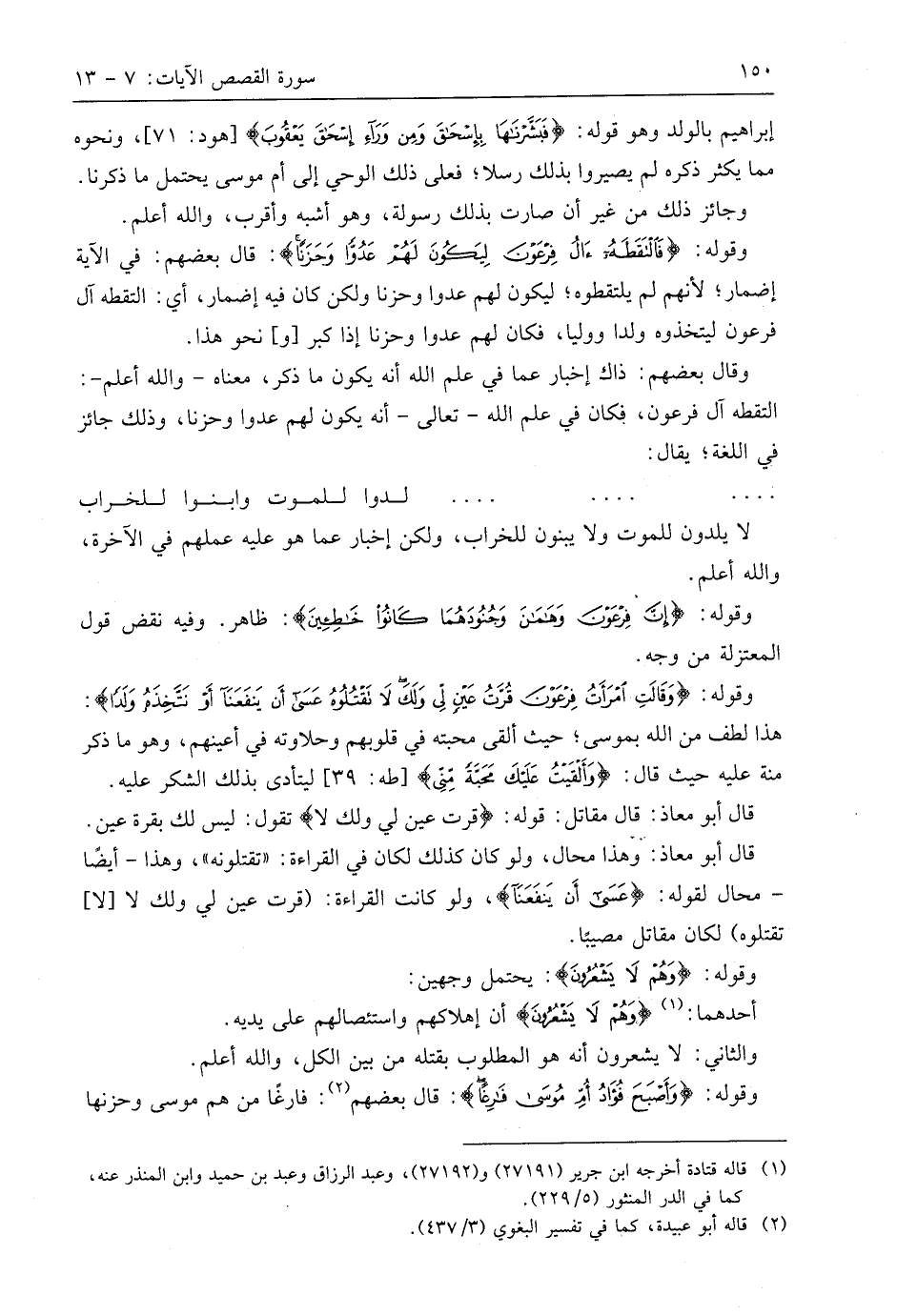 قال أبو معاذ: وهذا محال، ولو كان كذلك لكان في القراءة: " تقتلونه "، وهذا - أيضًا - محال لقوله: (عَسَى أَنْ يَنْفَعَنَا)، ولو كانت القراءة: (قرت عين لي ولك لا (لا) تقتلوه) لكان مقاتل مصيبًا.