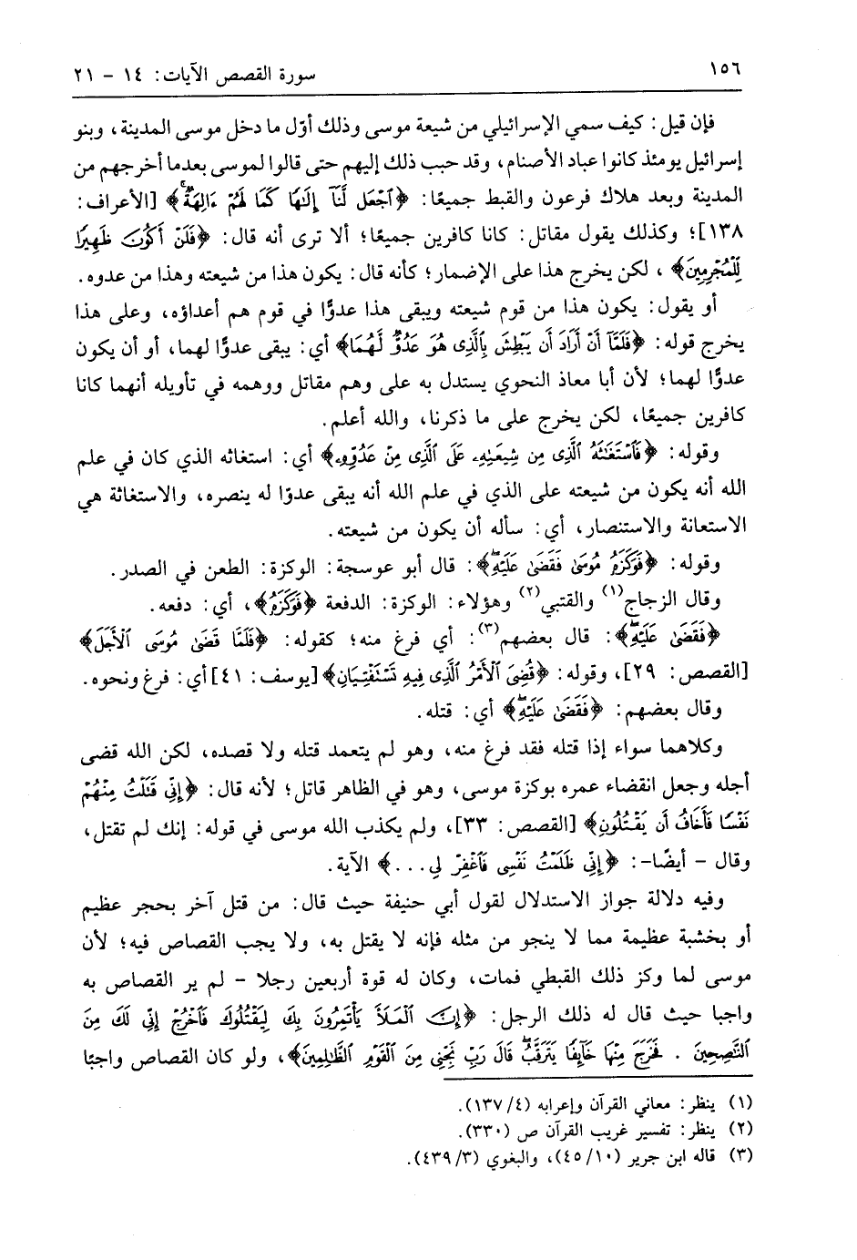 وكلاهما سواء إذا قتله فقد فرغ منه، وهو لم يتعمد قتله ولا قصده، لكن اللَّه قضى أجله وجعل انقضاء عمره بوكزة موسى، وهو في الظاهر قاتل؛ لأنه قال: (إِنِّي قَتَلْتُ مِنْهُمْ نَفْسًا فَأَخَافُ أَنْ يَقْتُلُونِ)، ولم يكذب اللَّه موسى في قوله: إنك لم تقتل، وقال -أيضًا-: (إِنِّي ظَلَمْتُ نَفْسِي فَاغْفِرْ لِي. . . (16). الآية.