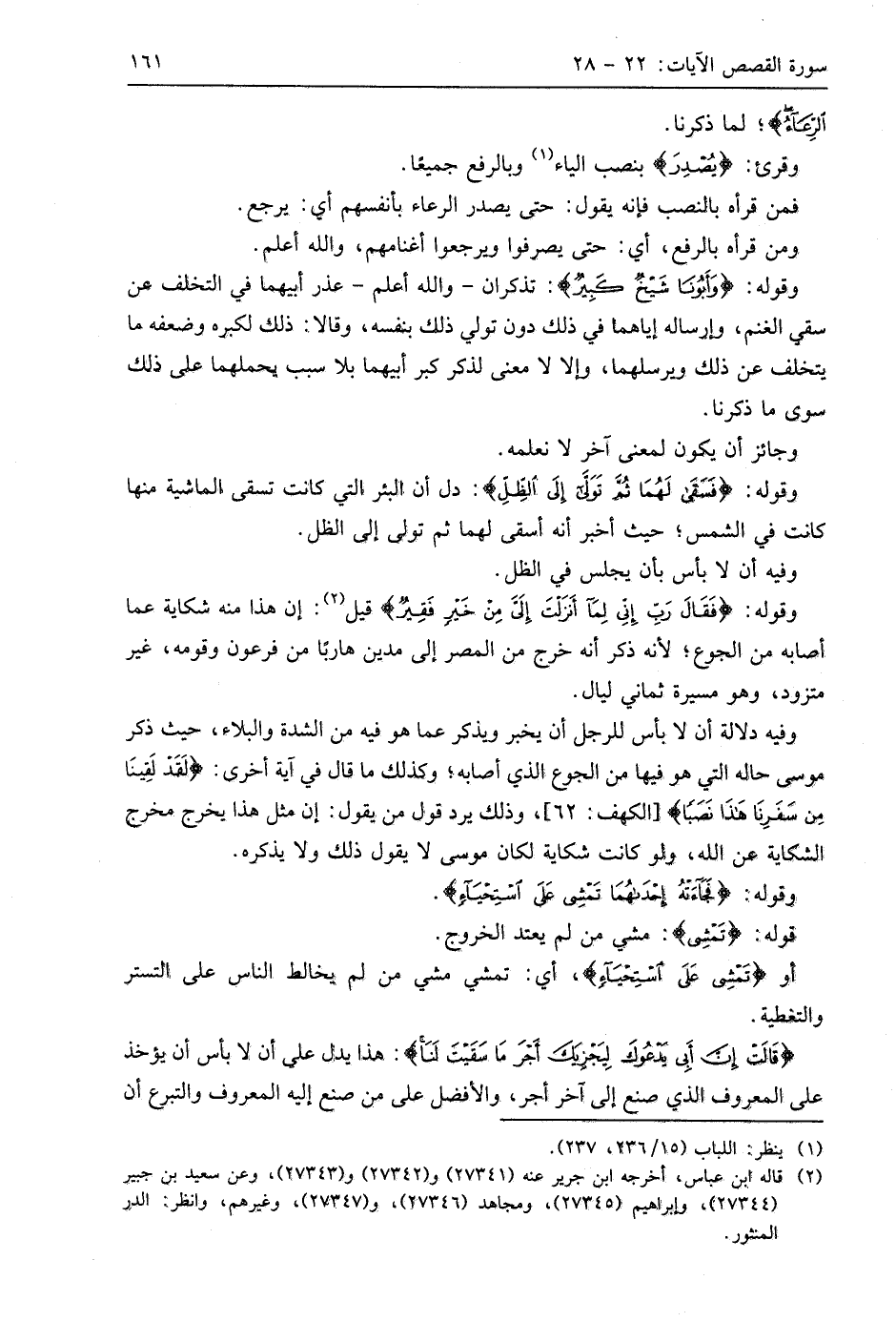 وقوله: (فَجَاءَتْهُ إِحْدَاهُمَا تَمْشِي عَلَى اسْتِحْيَاءٍ قَالَتْ إِنَّ أَبِي يَدْعُوكَ لِيَجْزِيَكَ أَجْرَ مَا سَقَيْتَ لَنَا فَلَمَّا جَاءَهُ وَقَصَّ عَلَيْهِ الْقَصَصَ قَالَ لَا تَخَفْ نَجَوْتَ مِنَ الْقَوْمِ الظَّالِمِينَ (25)
