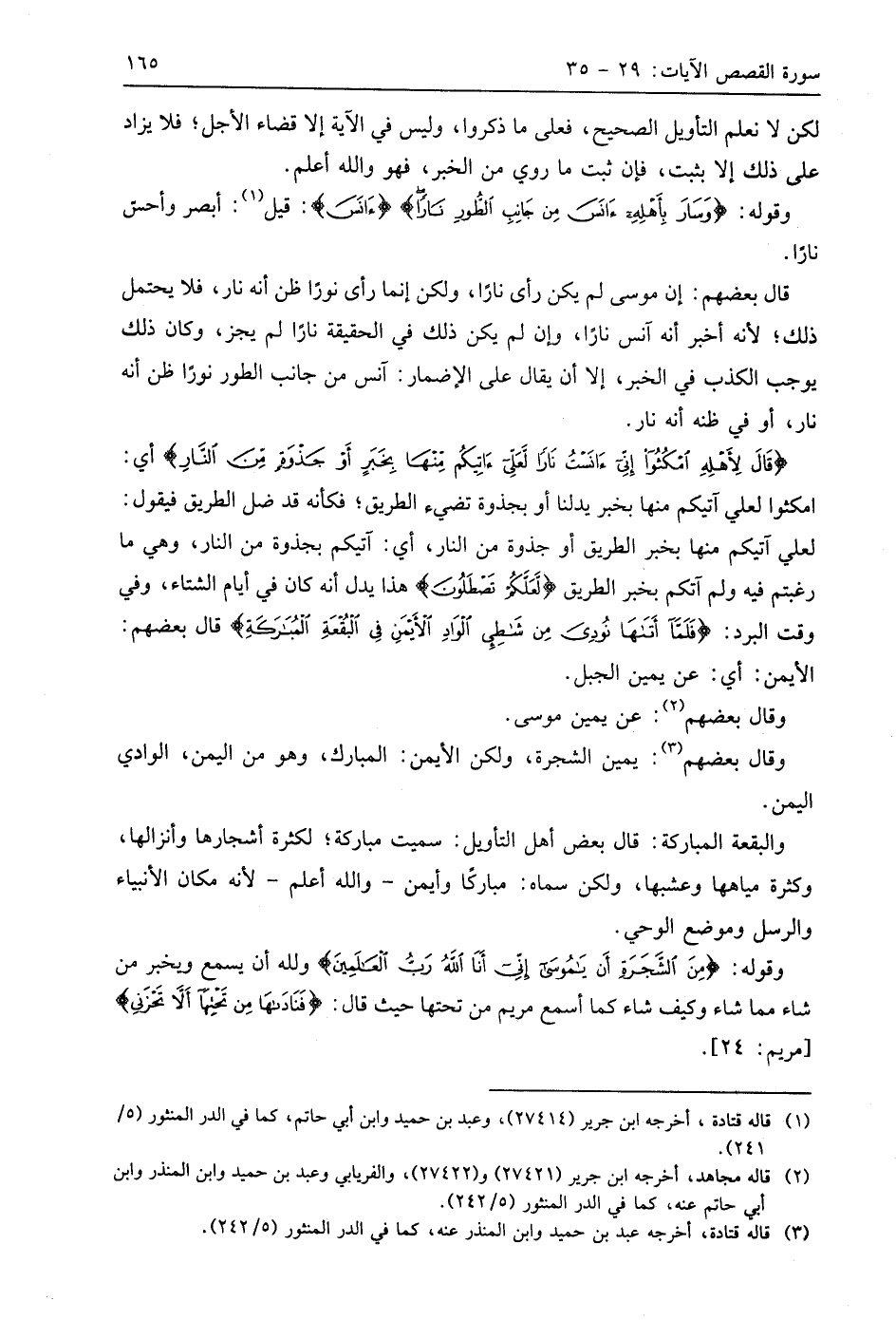 (قَالَ لِأَهْلِهِ امْكُثُوا إِنِّي آنَسْتُ نَارًا لَعَلِّي آتِيكُمْ مِنْهَا بِخَبَرٍ أَوْ جَذْوَةٍ مِنَ النَّارِ) أي: امكثوا لعلي آتيكم منها بخبر يدلنا أو بجذوة تضيء الطريق؛ فكأنه قد ضل الطرلق فيقول: لعلي آتيكم منها بخبر الطريق أو جذوة من النار، أي: آتيكم بجذوة من النار، وهي ما رغبتم فيه ولم آتكم بخبر الطريق (لَعَلَّكُمْ تَصْطَلُونَ) هذا يدل أنه كان في أيام الشتاء، وفي وقت البرد: (فَلَمَّا أَتَاهَا نُودِيَ مِنْ شَاطِئِ الْوَادِ الْأَيْمَنِ فِي الْبُقْعَةِ الْمُبَارَكَةِ مِنَ الشَّجَرَةِ أَنْ يَا مُوسَى إِنِّي أَنَا اللَّهُ رَبُّ الْعَالَمِينَ (30) قَالَ بَعْضُهُمْ: الأيمن: أي: عن يمين الجبل.