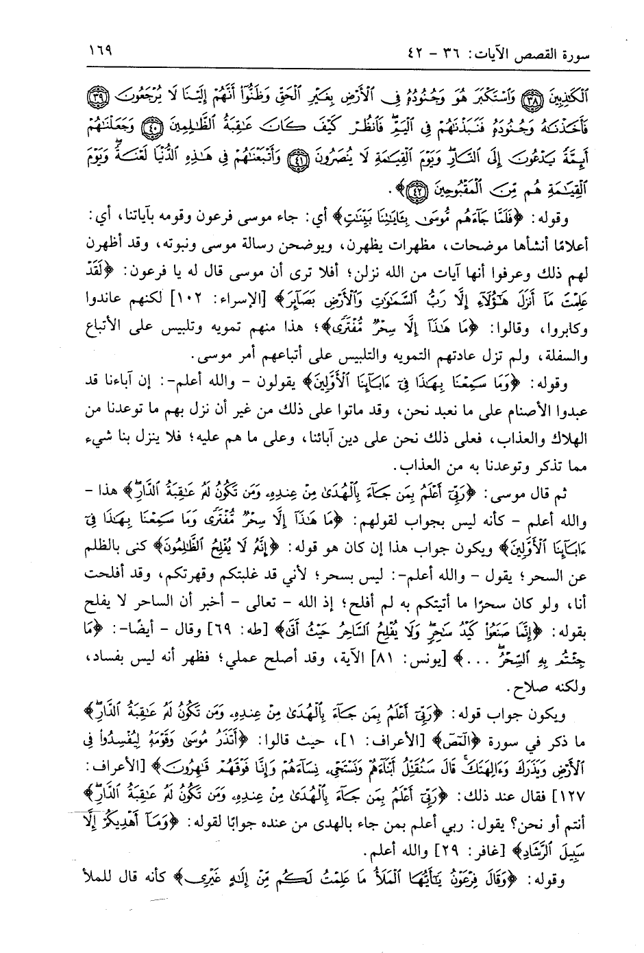 ثم قال موسى: (رَبِّي أَعْلَمُ بِمَنْ جَاءَ بِالْهُدَى مِنْ عِنْدِهِ وَمَنْ تَكُونُ لَهُ عَاقِبَةُ الدَّارِ إِنَّهُ لَا يُفْلِحُ الظَّالِمُونَ (37) هذا - واللَّه أعلم - كأنه ليس بجواب لقولهم: (مَا هَذَا إِلَّا سِحْرٌ مُفْتَرًى وَمَا سَمِعْنَا بِهَذَا فِي آبَائِنَا الْأَوَّلِينَ) ويكون جواب هذا إن كان هو قوله: (إِنَّهُ لَا يُفْلِحُ الظَّالِمُونَ) كنى بالظلم عن السحر؛ يقول - واللَّه أعلم - ليس بسحر؛ لأني قد غلبتكم وقهرتكم، وقد أفلحت أنا، ولو كان سحرًا ما أتيتكم به لم أفلح؛ إذ اللَّه - تعالى - أخبر أن الساحر لا يفلح بقوله: (إِنَّمَا صَنَعُوا كَيْدُ سَاحِرٍ وَلَا يُفْلِحُ السَّاحِرُ حَيْثُ أَتَى)، وقال -أيضًا-: (مَا جِئْتُمْ بِهِ السِّحْرُ. . .) الآية، وقد أصلح عملي؛ فظهر أنه ليس بفساد، ولكنه صلاح.