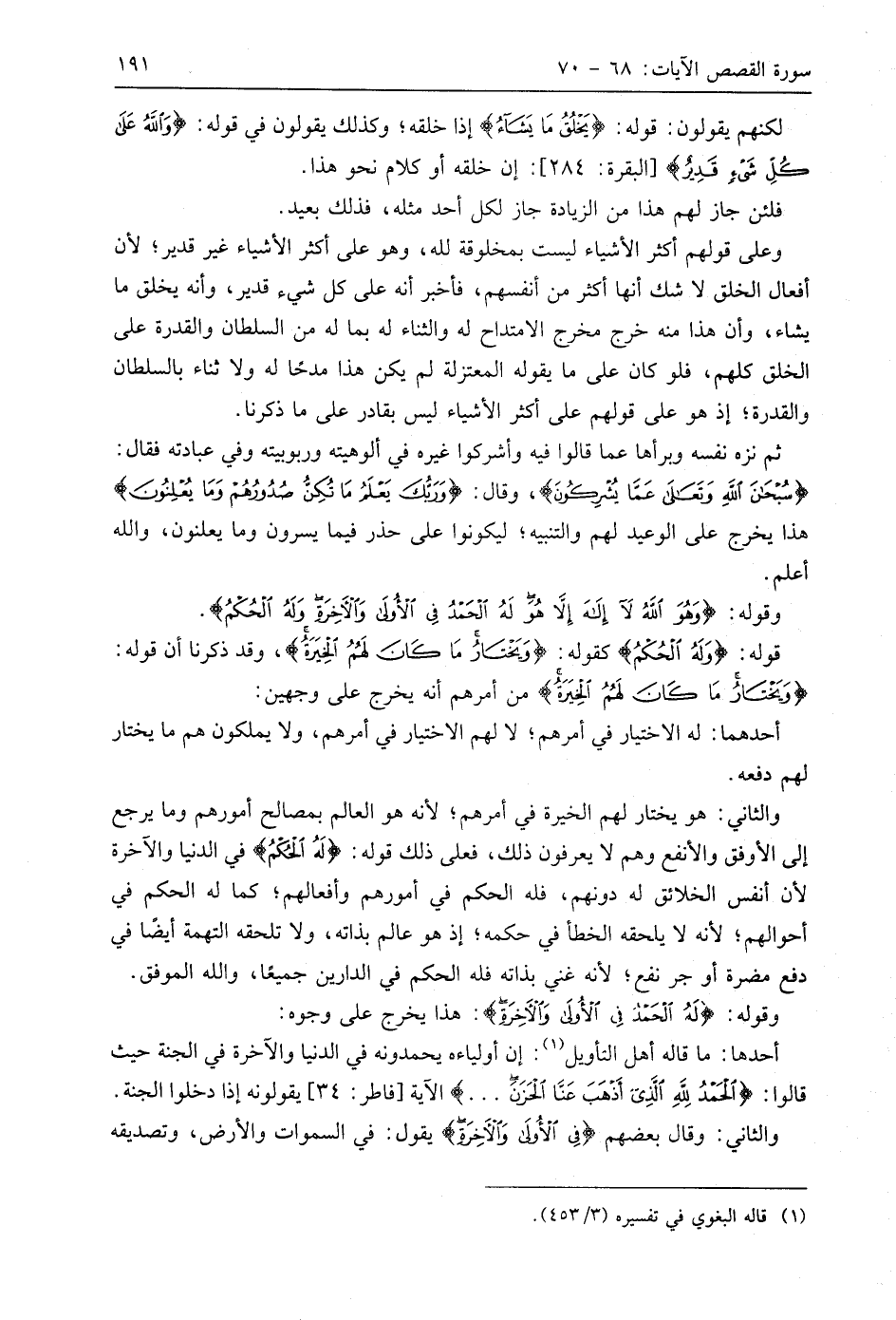 وقوله: (وَهُوَ اللَّهُ لَا إِلَهَ إِلَّا هُوَ لَهُ الْحَمْدُ فِي الْأُولَى وَالْآخِرَةِ وَلَهُ الْحُكْمُ وَإِلَيْهِ تُرْجَعُونَ (70)
