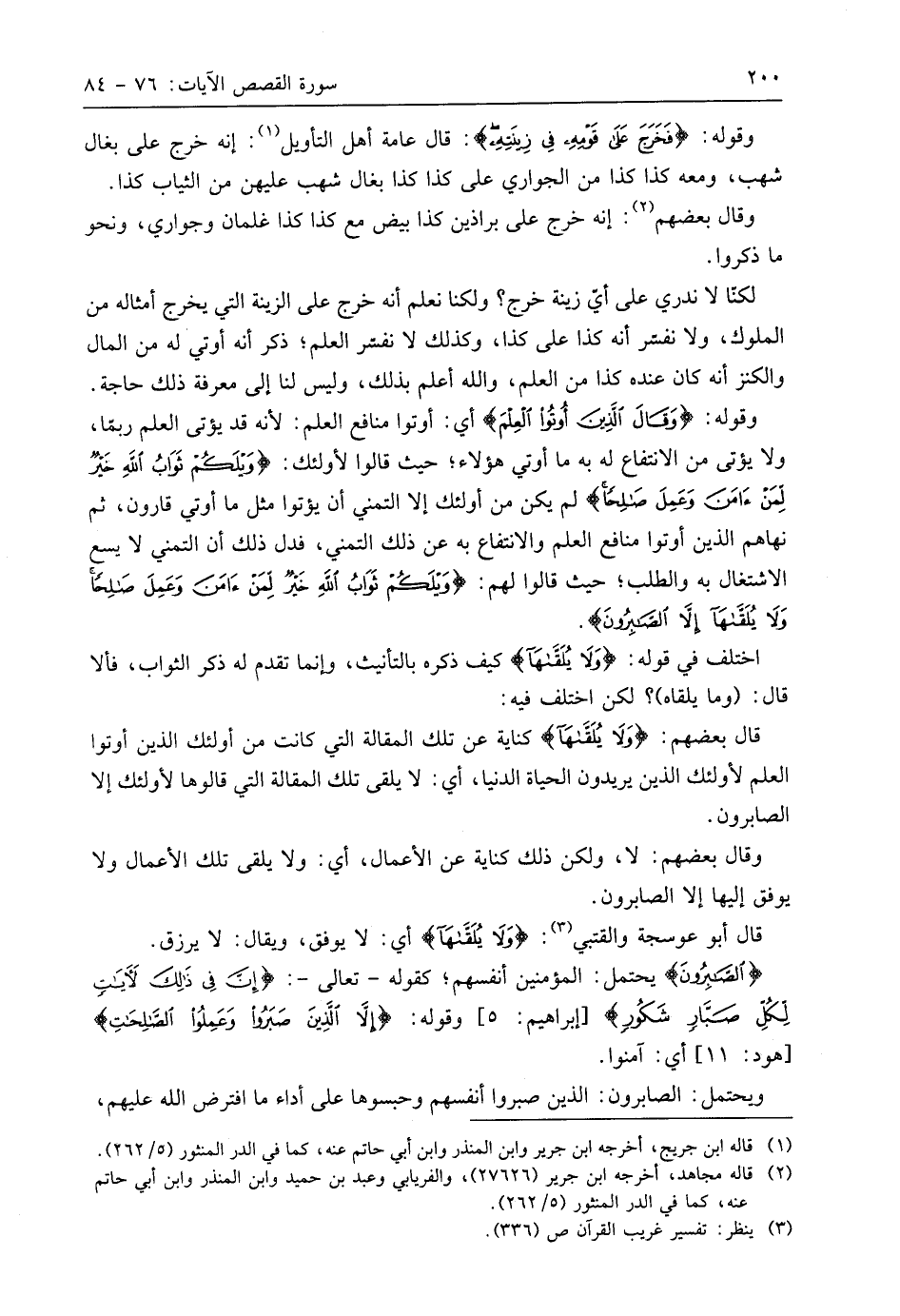 قَالَ بَعْضُهُمْ: (وَلَا يُلَقَّاهَا) كناية عن تلك المقالة التي كانت من أُولَئِكَ الذين أوتوا العلم لأُولَئِكَ الذين يريدون الحياة الدنيا، أي: لا يلقى تلك المقالة التي قالوها لأُولَئِكَ إلا الصابرون.