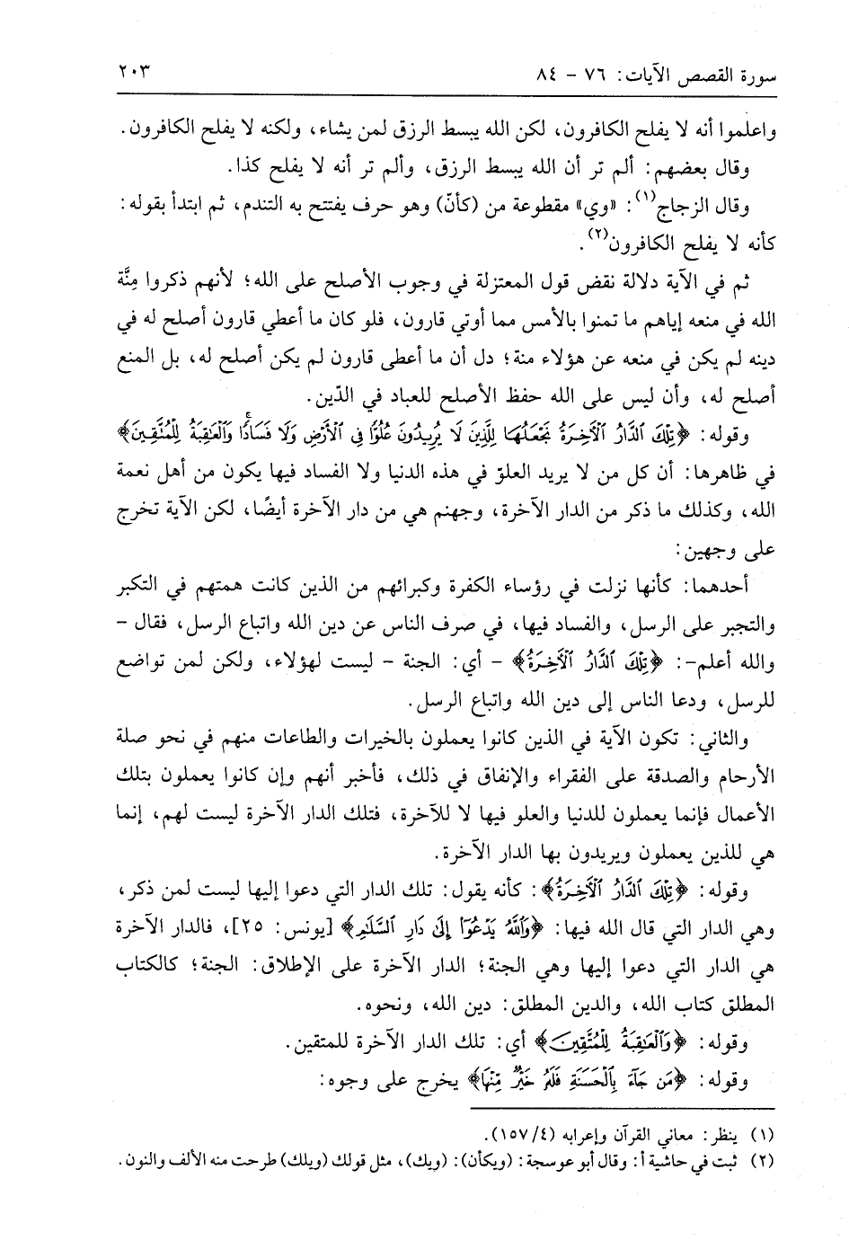 وقوله: (تِلْكَ الدَّارُ الْآخِرَةُ نَجْعَلُهَا لِلَّذِينَ لَا يُرِيدُونَ عُلُوًّا فِي الْأَرْضِ وَلَا فَسَادًا وَالْعَاقِبَةُ لِلْمُتَّقِينَ (83) في ظاهرها: أن كل من لا يريد العلو في هذه الدنيا ولا الفساد فيها يكون من أهل نعمة اللَّه، وكذلك ما ذكر من الدار الآخرة، وجهنم هي من دار الآخرة أيضًا، لكن الآية تخرج على وجهين:
