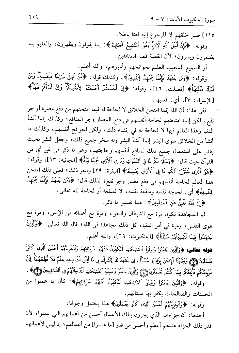 قوله تعالى: (وَالَّذِينَ آمَنُوا وَعَمِلُوا الصَّالِحَاتِ لَنُكَفِّرَنَّ عَنْهُمْ سَيِّئَاتِهِمْ وَلَنَجْزِيَنَّهُمْ أَحْسَنَ الَّذِي كَانُوا يَعْمَلُونَ (7) وَوَصَّيْنَا الْإِنْسَانَ بِوَالِدَيْهِ حُسْنًا وَإِنْ جَاهَدَاكَ لِتُشْرِكَ بِي مَا لَيْسَ لَكَ بِهِ عِلْمٌ فَلَا تُطِعْهُمَا إِلَيَّ مَرْجِعُكُمْ فَأُنَبِّئُكُمْ بِمَا كُنْتُمْ تَعْمَلُونَ (8) وَالَّذِينَ آمَنُوا وَعَمِلُوا الصَّالِحَاتِ لَنُدْخِلَنَّهُمْ فِي الصَّالِحِينَ (9)