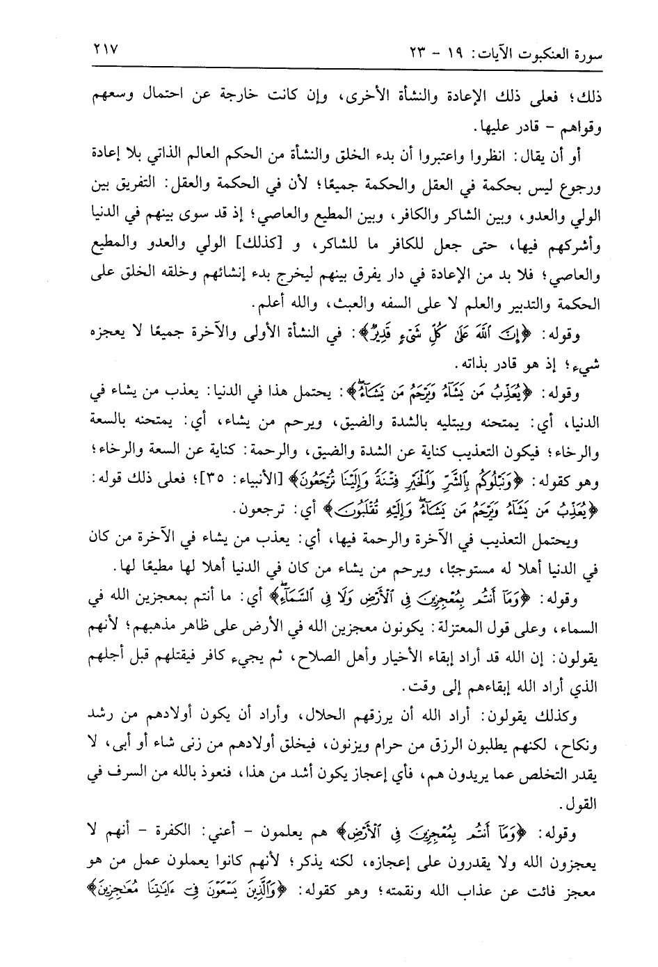 وقوله: (إِنَّ اللَّهَ عَلَى كُلِّ شَيْءٍ قَدِيرٌ): في النشأة الأولى والآخرة جميعًا لا يعجزه شيء؛ إذ هو قادر بذاته.