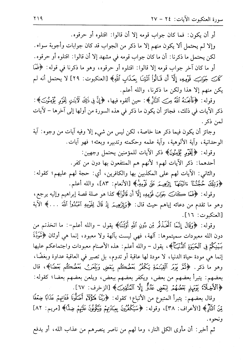 وقوله: (فَأَنْجَاهُ اللَّهُ مِنَ النَّارِ): حين ألقوه فيها، (إِنَّ فِي ذَلِكَ لَآيَاتٍ لِقَوْمٍ يُؤْمِنُونَ): ذكر الآيات في ذلك، فجائز أن يكون ما ذكر في هذه السورة من أولها إلى آخرها - لآيات لمن ذكر.