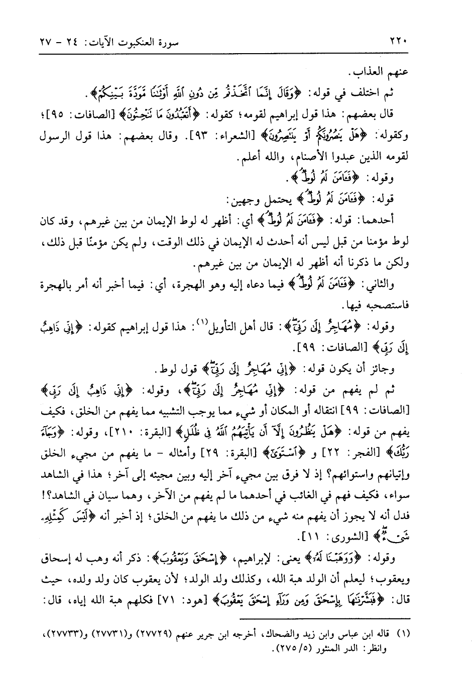 ثم لم يفهم من قوله: (إِنِّي مُهَاجِرٌ إِلَى رَبِّي)، وقوله: (إِنِّي ذَاهِبٌ إِلَى رَبِّي)، انتقاله أو المكان أو شيء مما يوجب التشبيه مما يفهم من الخلق، فكيف يفهم من قوله: (هَلْ يَنْظُرُونَ إِلَّا أَنْ يَأْتِيَهُمُ اللَّهُ فِي ظُلَلٍ)، وقوله: (وَجَاءَ رَبُّكَ)، و (اسْتَوَى)، وأمثاله - ما يفهم من مجيء الخلق وإتيانهم واستوائهم؛ إذ لا فرق بين مجيء آخر إليه وبين مجيئه إلى آخر؛ هذا في الشاهد سواء، فكيف فهم في الغائب في أحدهما ما لم يفهم من الآخر، وهما سيان في الشاهد؟! فدل أنه لا يجوز أن يفهم منه شيء من ذلك ما يفهم من الخلق؛ إذ أخبر أنه (لَيْسَ كَمِثْلِهِ شَيْءٌ).