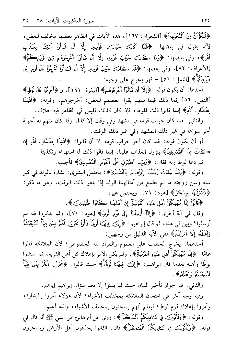 (لَتَكُونَنَّ مِنَ الْمُخْرَجِينَ)، هذه الآيات في الظاهر بعضها مخالف لبعض؛ لأنه يقول في بعضها: (فَمَا كَانَ جَوَابَ قَوْمِهِ إِلَّا أَنْ قَالُوا ائْتِنَا بِعَذَابِ اللَّهِ)، وفي بعضها: (وَمَا كَانَ جَوَابَ قَوْمِهِ إِلَّا أَنْ قَالُوا أَخْرِجُوهُمْ مِنْ قَرْيَتِكُمْ)، وفي بعضها: (فَمَا كَانَ جَوَابَ قَوْمِهِ إِلَّا أَنْ قَالُوا أَخْرِجُوا آلَ لُوطٍ مِنْ قَرْيَتِكُمْ) - فهو يخرج على وجوه: