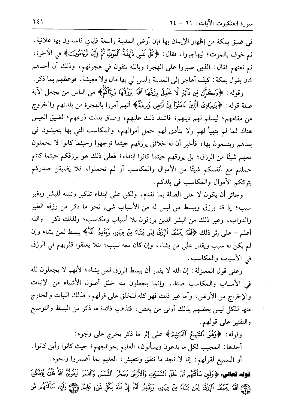 قوله تعالى: (وَلَئِنْ سَأَلْتَهُمْ مَنْ خَلَقَ السَّمَاوَاتِ وَالْأَرْضَ وَسَخَّرَ الشَّمْسَ وَالْقَمَرَ لَيَقُولُنَّ اللَّهُ فَأَنَّى يُؤْفَكُونَ (61) اللَّهُ يَبْسُطُ الرِّزْقَ لِمَنْ يَشَاءُ مِنْ عِبَادِهِ وَيَقْدِرُ لَهُ إِنَّ اللَّهَ بِكُلِّ شَيْءٍ عَلِيمٌ (62) وَلَئِنْ سَأَلْتَهُمْ مَنْ