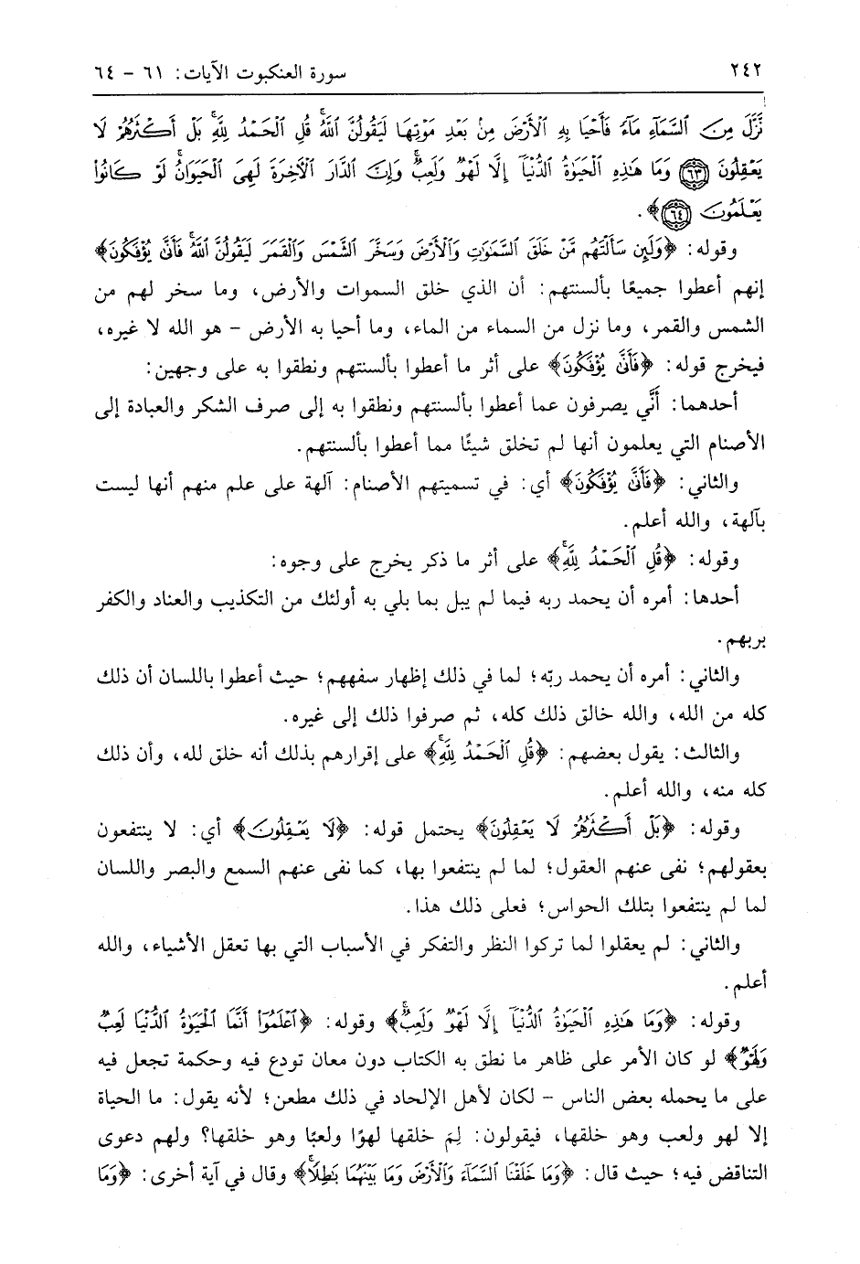 وقوله: (بَلْ أَكْثَرُهُمْ لَا يَعْقِلُونَ) يحتمل قوله: (لَا يَعْقِلُونَ) أي: لا ينتفعون بعقولهم؛ نفى عنهم العقول؛ لما لم ينتفعوا بها، كما نفى عنهم السمع والبصر واللسان لما لم ينتفعوا بقلك الحواس؛ فعلى ذلك هذا.