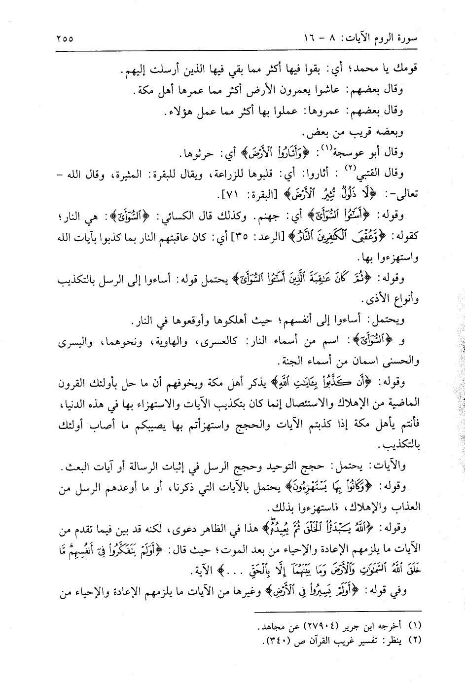 وقوله: (ثُمَّ كَانَ عَاقِبَةَ الَّذِينَ أَسَاءُوا السُّوأَى أَنْ كَذَّبُوا بِآيَاتِ اللَّهِ (10) يحتمل قوله: أساءوا إلى الرسل بالتكذيب وأنواع الأذى.