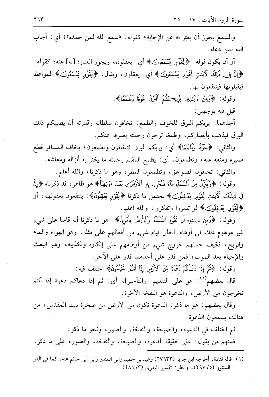 وقوله: (وَمِنْ آيَاتِهِ يُرِيكُمُ الْبَرْقَ خَوْفًا وَطَمَعًا وَيُنَزِّلُ مِنَ السَّمَاءِ مَاءً فَيُحْيِي بِهِ الْأَرْضَ بَعْدَ مَوْتِهَا إِنَّ فِي ذَلِكَ لَآيَاتٍ لِقَوْمٍ يَعْقِلُونَ (24)
