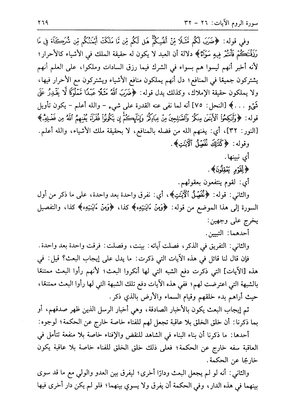 والثاني: قوله: (نُفَصِّلُ الْآيَاتِ)، أي: نفرق واحدة بعد واحدة، على ما ذكر من أول السورة إلى هذا الموضع من قوله: (وَمِنْ آيَاتِهِ) كذا، (وَمِنْ آيَاتِهِ) كذا، والتفصيل يخرج على وجهين: