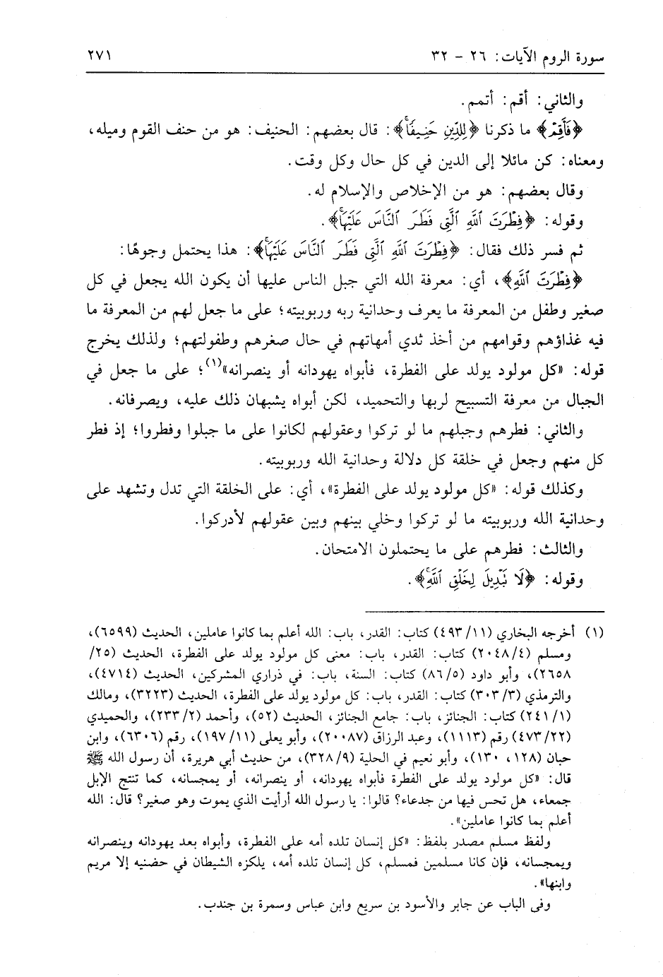 وقوله: (فِطْرَتَ اللَّهِ الَّتِي فَطَرَ النَّاسَ عَلَيْهَا).