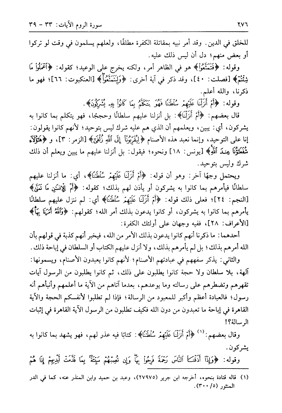 وقوله: (أَمْ أَنْزَلْنَا عَلَيْهِمْ سُلْطَانًا فَهُوَ يَتَكَلَّمُ بِمَا كَانُوا بِهِ يُشْرِكُونَ (35)