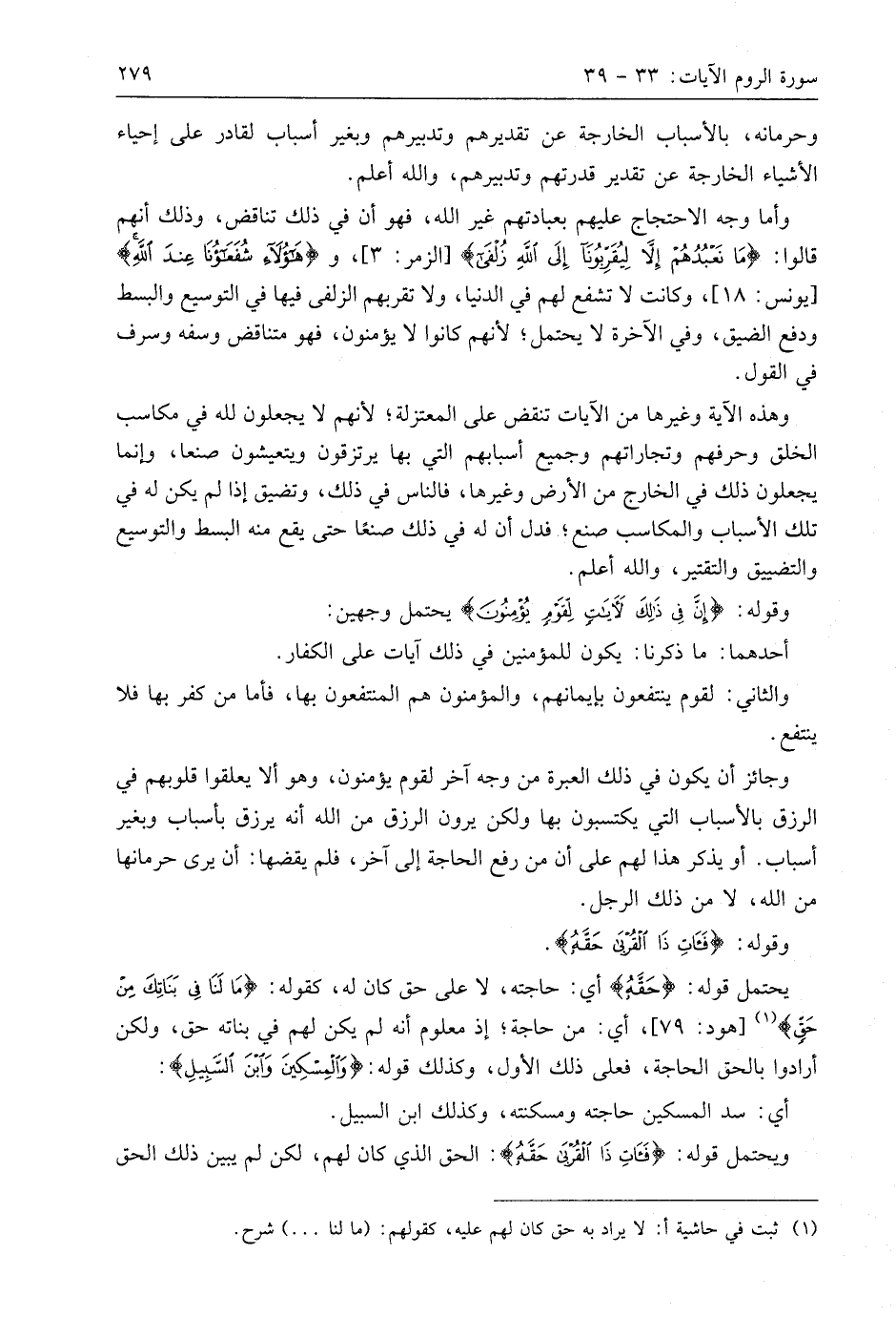 وقوله: (فَآتِ ذَا الْقُرْبَى حَقَّهُ وَالْمِسْكِينَ وَابْنَ السَّبِيلِ ذَلِكَ خَيْرٌ لِلَّذِينَ يُرِيدُونَ وَجْهَ اللَّهِ وَأُولَئِكَ هُمُ الْمُفْلِحُونَ (38)