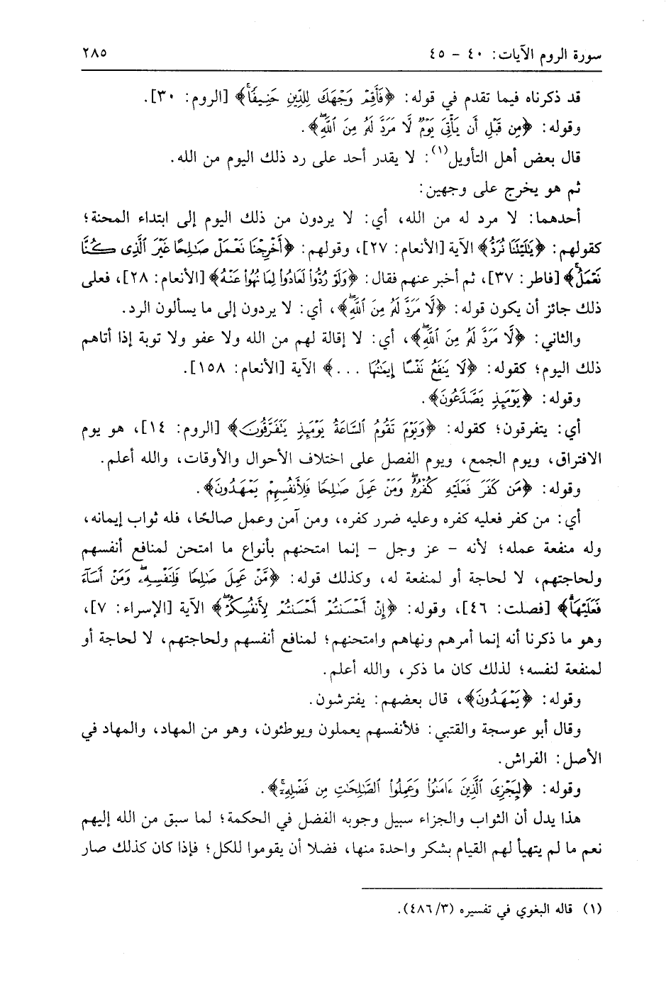 وقوله: (مَنْ كَفَرَ فَعَلَيْهِ كُفْرُهُ وَمَنْ عَمِلَ صَالِحًا فَلِأَنْفُسِهِمْ يَمْهَدُونَ (44)