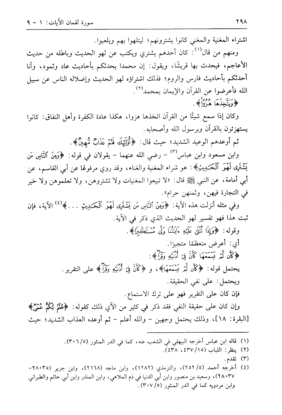 وفي مثله أنزلت هذه الآية: (وَمِنَ النَّاسِ مَنْ يَشْتَرِي لَهْوَ الْحَدِيثِ. . .) الآية، فإن ثبت هذا فهو تفسير لهو الحديث الذي ذكر في الآية.