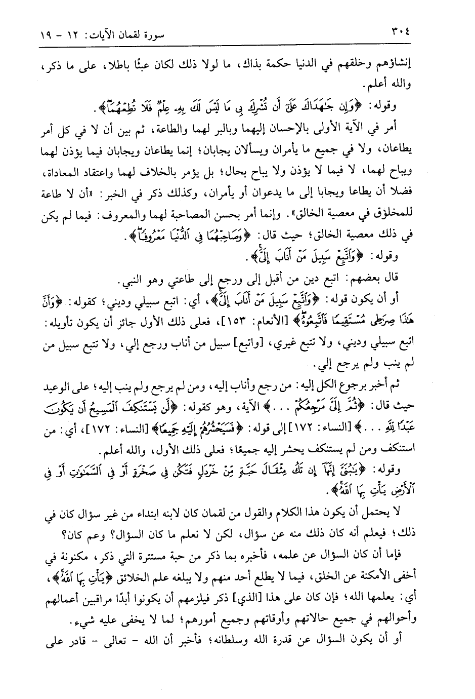 وقوله: (وَإِنْ جَاهَدَاكَ عَلَى أَنْ تُشْرِكَ بِي مَا لَيْسَ لَكَ بِهِ عِلْمٌ فَلَا تُطِعْهُمَا وَصَاحِبْهُمَا فِي الدُّنْيَا مَعْرُوفًا وَاتَّبِعْ سَبِيلَ مَنْ أَنَابَ إِلَيَّ ثُمَّ إِلَيَّ مَرْجِعُكُمْ فَأُنَبِّئُكُمْ بِمَا كُنْتُمْ تَعْمَلُونَ (15)