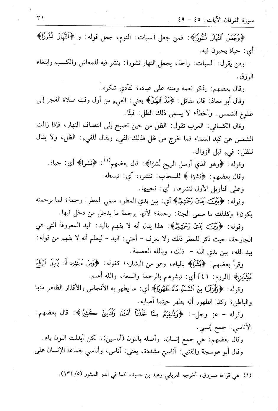 (وَجَعَلَ النَّهَارَ نُشُورًا): فمن جعل السبات: النوم، جعل قوله: (النَّهَارَ نُشُورًا) أي: حياة يحيون فيه.