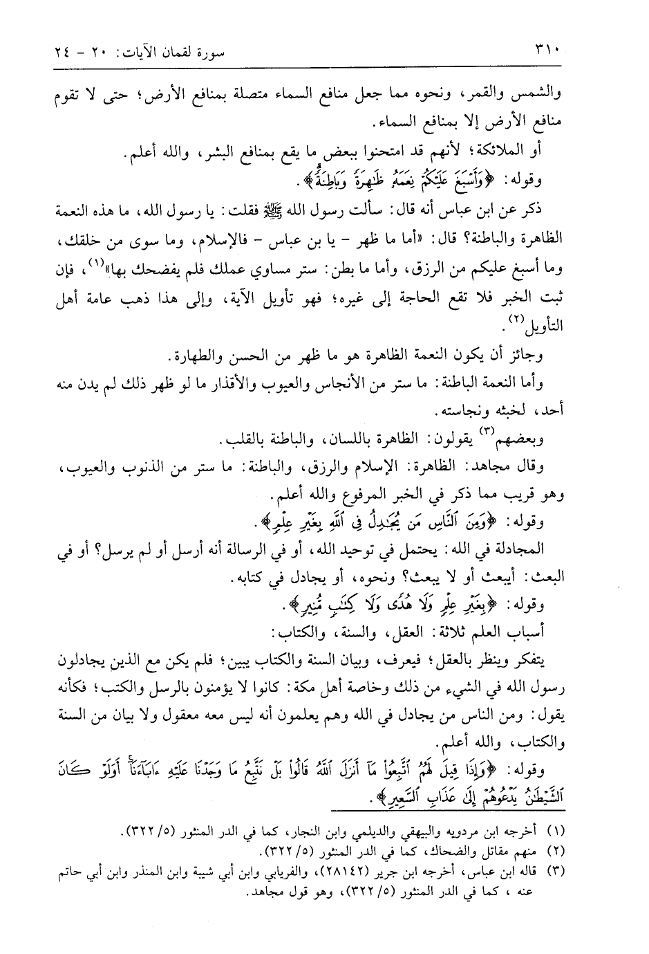 وقوله: (وَأَسْبَغَ عَلَيْكُمْ نِعَمَهُ ظَاهِرَةً وَبَاطِنَةً).