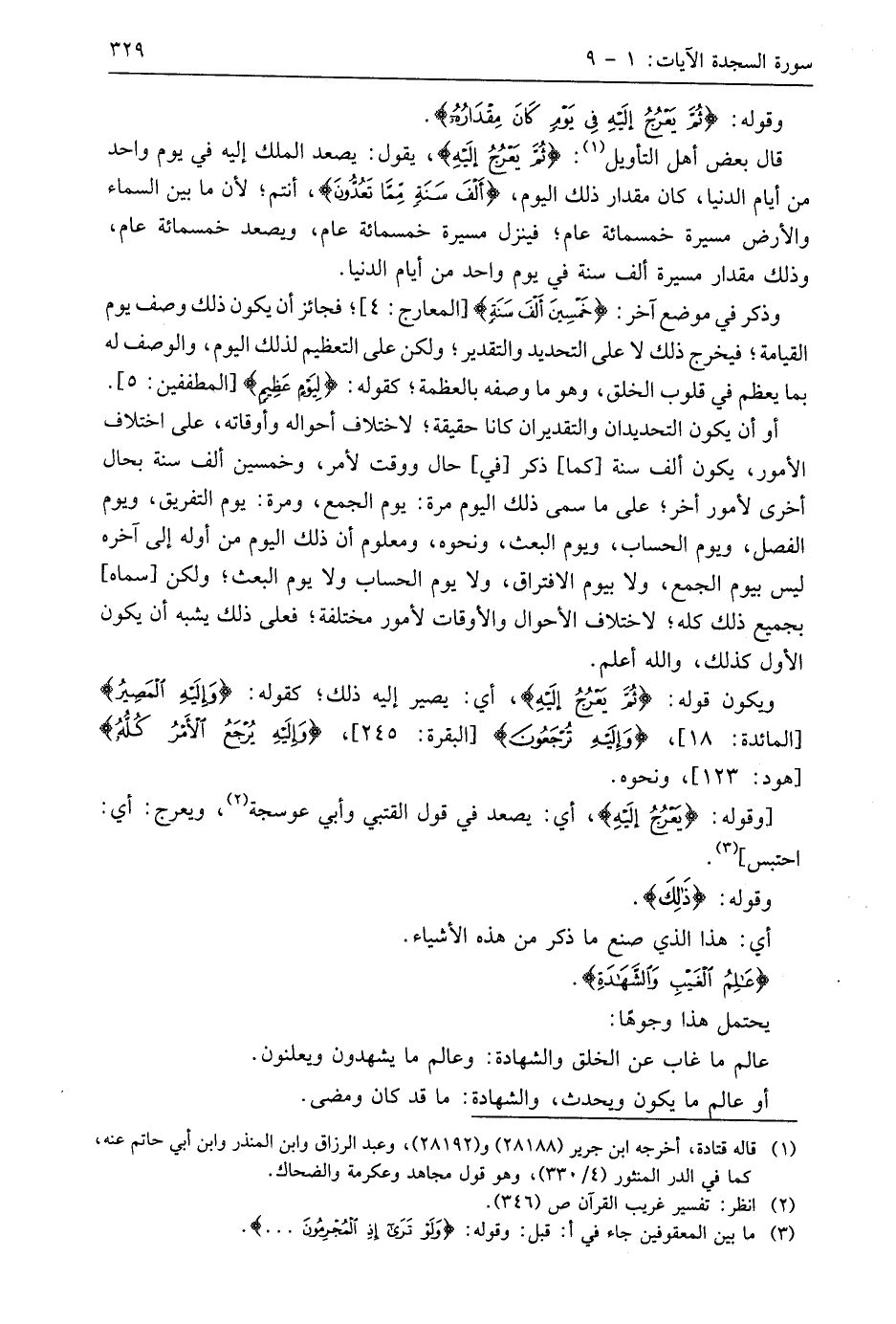 قال بعض أهل التأويل: (ثُمَّ يَعْرُجُ إِلَيْهِ)، يقول: يصعد الملك إليه في يوم واحد من أيام الدنيا، كان مقدار ذلك اليوم، (أَلْفَ سَنَةٍ مِمَّا تَعُدُّونَ)، أنتم؛ لأن ما بين السماء والأرض مسيرة خمسمائة عام؛ فينزل مسيرة خمسمائة عام، ويصعد خمسمائة عام، وذلك مقدار مسيرة ألف سنة في يوم واحد من أيام الدنيا.