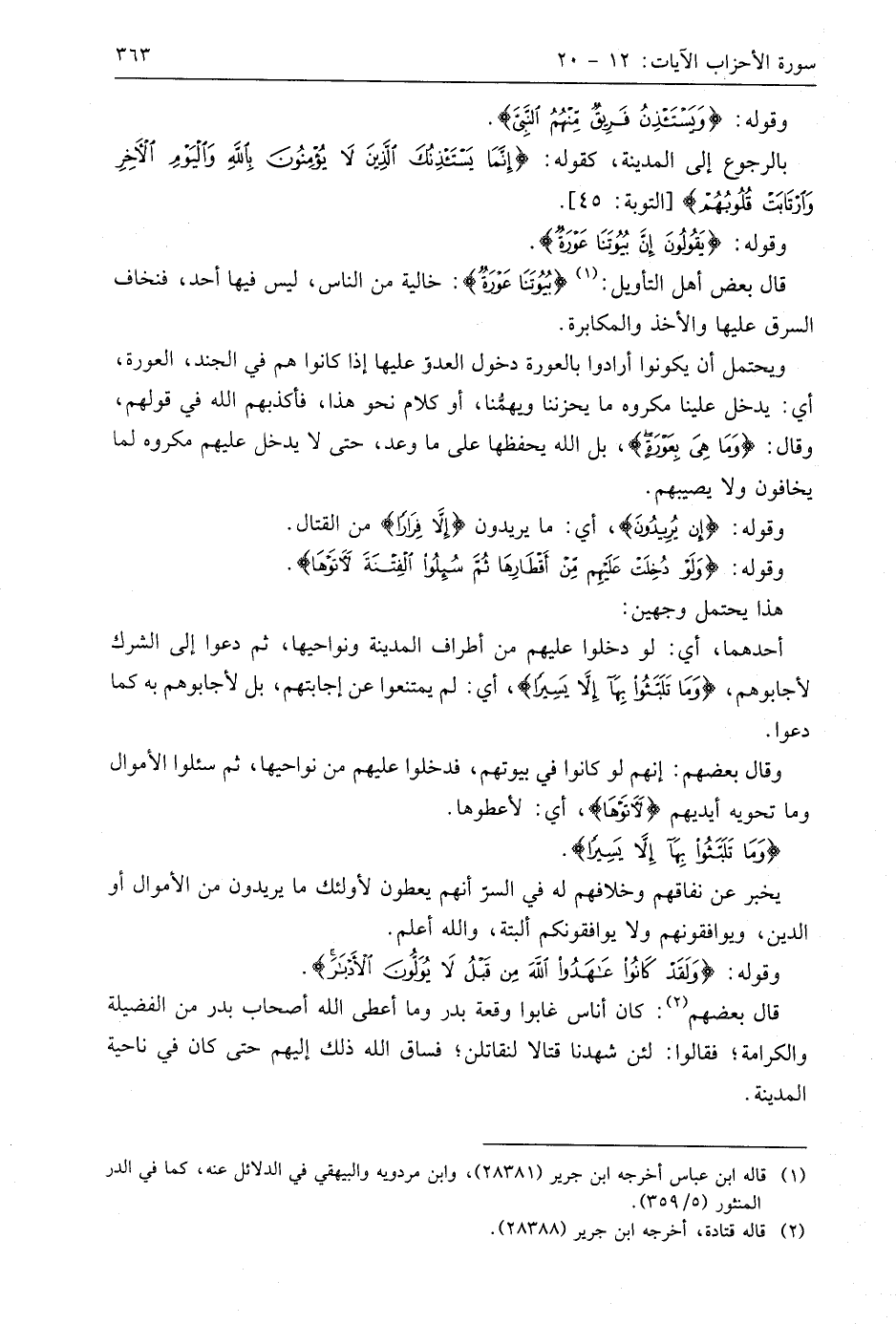 وقوله: (وَلَقَدْ كَانُوا عَاهَدُوا اللَّهَ مِنْ قَبْلُ لَا يُوَلُّونَ الْأَدْبَارَ وَكَانَ عَهْدُ اللَّهِ مَسْئُولًا (15)