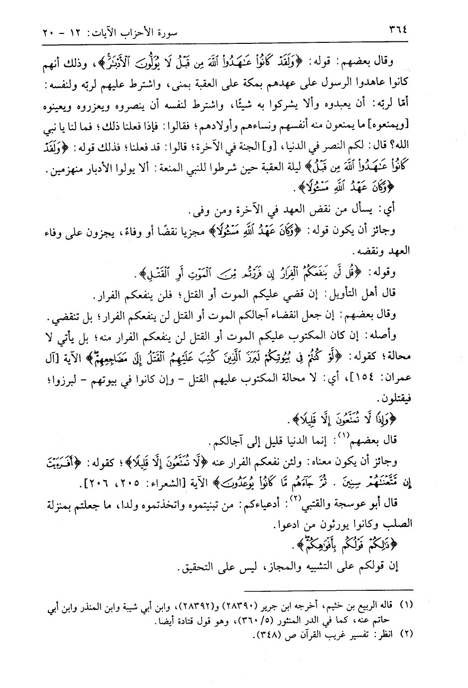 وجائز أن يكون معناه: ولئن نفعكم الفرار عنه (لَا تُمَتَّعُونَ إِلَّا قَلِيلًا)؛ كقوله: (أَفَرَأَيْتَ إِنْ مَتَّعْنَاهُمْ سِنِينَ (205) ثُمَّ جَاءَهُمْ مَا كَانُوا يُوعَدُونَ) الآية.
