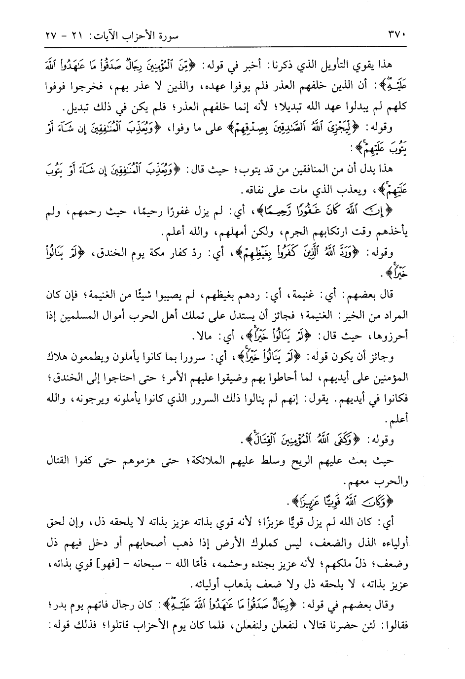 وقوله: (وَرَدَّ اللَّهُ الَّذِينَ كَفَرُوا بِغَيْظِهِمْ لَمْ يَنَالُوا خَيْرًا وَكَفَى اللَّهُ الْمُؤْمِنِينَ الْقِتَالَ وَكَانَ اللَّهُ قَوِيًّا عَزِيزًا (25)