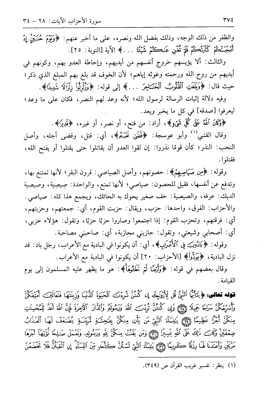 وقَالَ الْقُتَبِيُّ وأَبُو عَوْسَجَةَ: (قَضَى نَحْبَهُ)، أي: قتل، وقضى أجله، وأصل النحب: النذر؛ كأن قومًا نذروا: إن لقوا العدو أن يقاتلوا حتى يقتلوا أو يفتح اللَّه، فقتلوا.