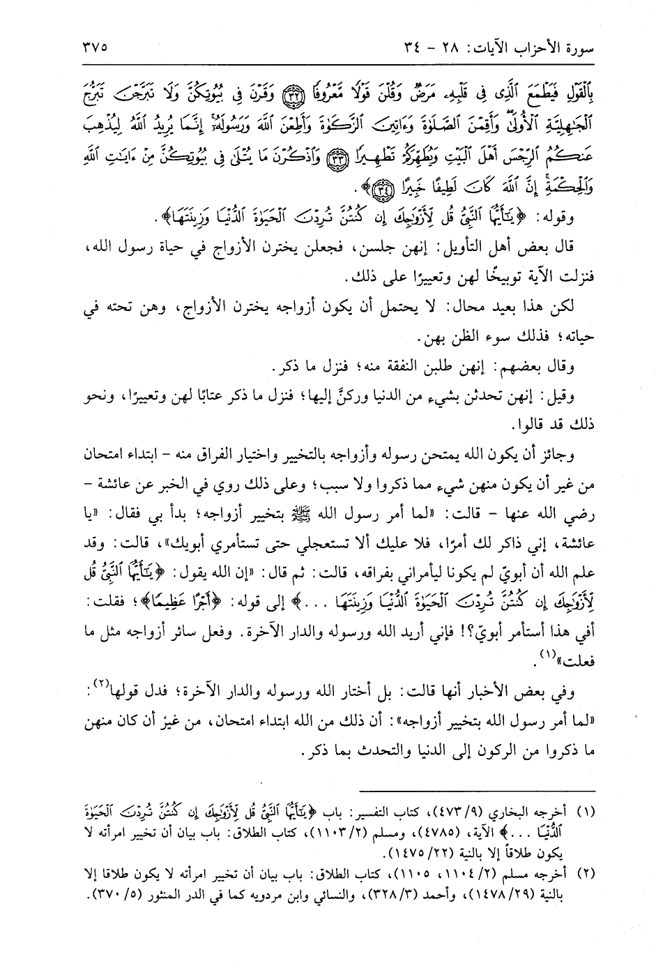 وقوله: (يَا أَيُّهَا النَّبِيُّ قُلْ لِأَزْوَاجِكَ إِنْ كُنْتُنَّ تُرِدْنَ الْحَيَاةَ الدُّنْيَا وَزِينَتَهَا ... (28)
