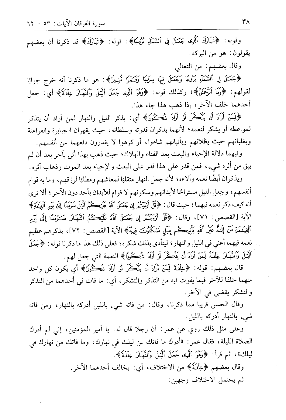 وقوله: (تَبَارَكَ الَّذِي جَعَلَ فِي السَّمَاءِ بُرُوجًا وَجَعَلَ فِيهَا سِرَاجًا وَقَمَرًا مُنِيرًا (61) قوله: (تَبَارَكَ) قد ذكرنا أن بعضهم يقولون: هو من البركة.