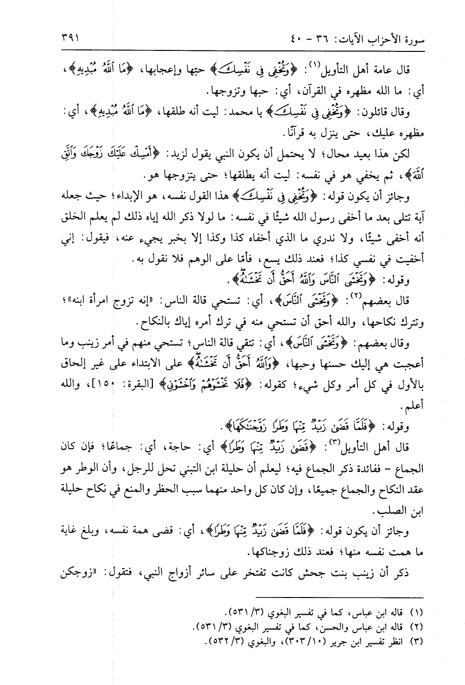 قال عامة أهل التأويل: (وَتُخْفِي فِي نَفْسِكَ) حُبَّها وإعجابها، (مَا اللَّهُ مُبْدِيهِ)، أي: ما اللَّه مظهره في القرآن، أي: حبها وتزوجها.