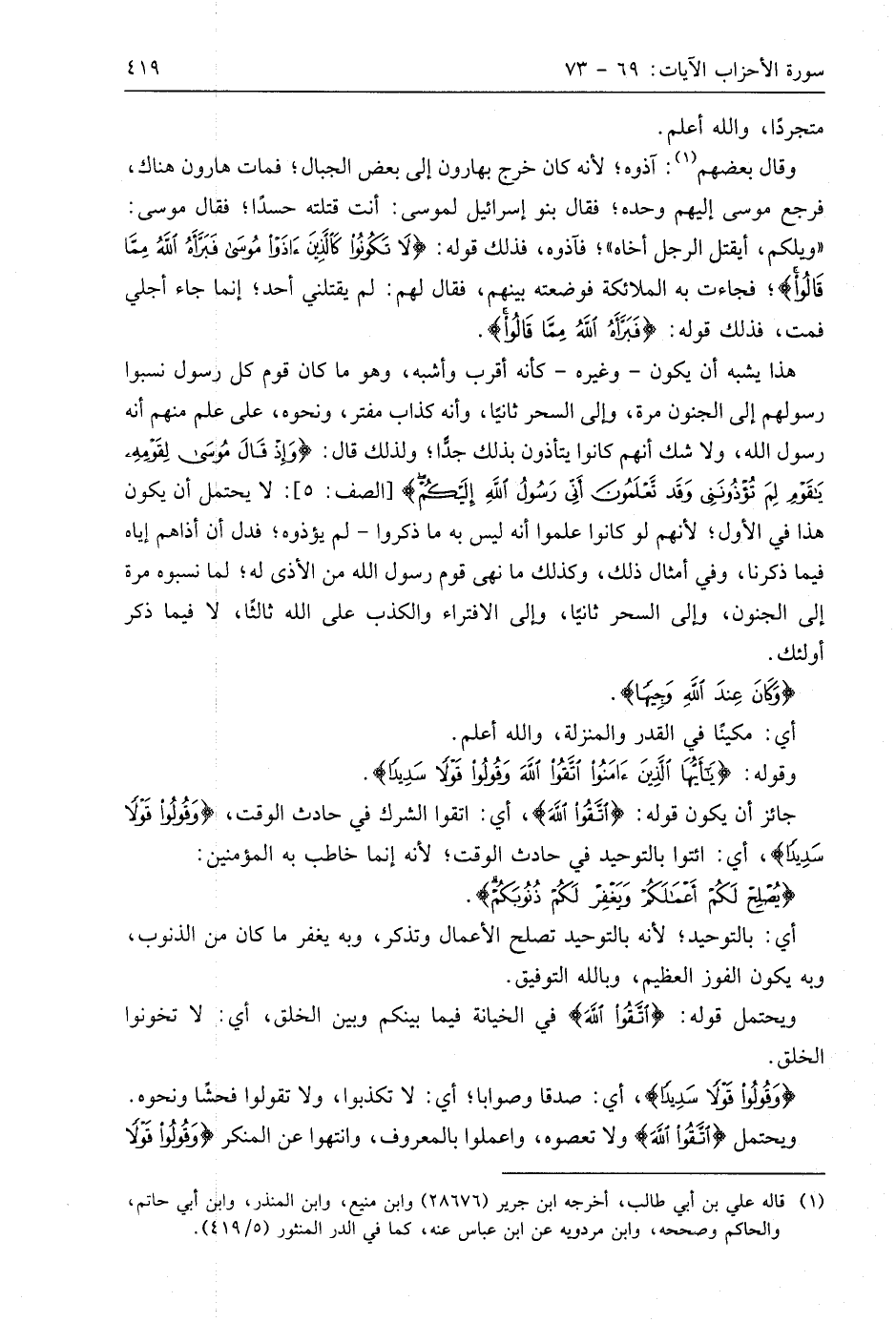 وقوله: (يَا أَيُّهَا الَّذِينَ آمَنُوا اتَّقُوا اللَّهَ وَقُولُوا قَوْلًا سَدِيدًا (70)