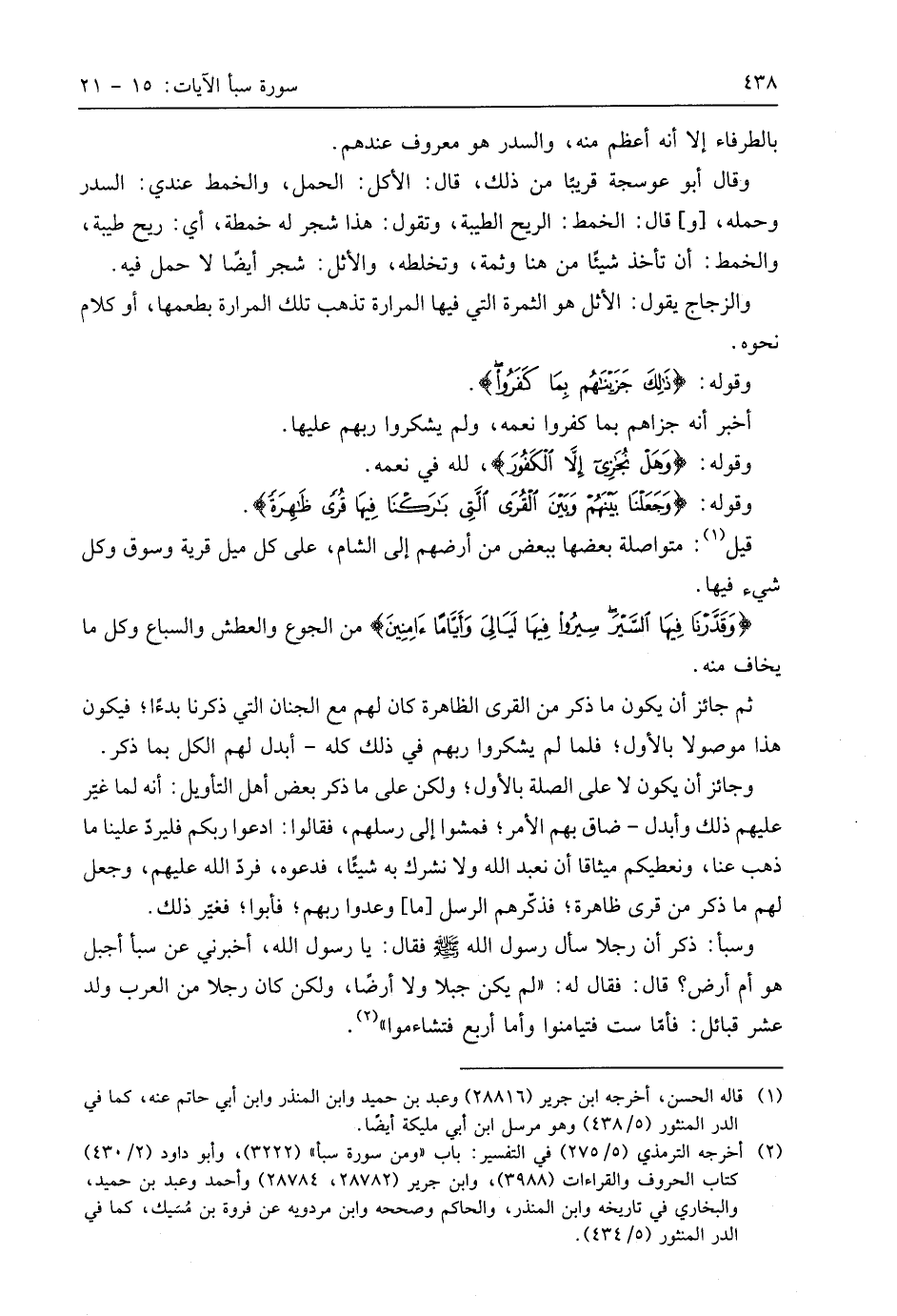 وسبأ: ذكر أن رجلا سأل رسول اللَّه - صَلَّى اللَّهُ عَلَيهِ وَسَلَّمَ - فقال: يا رسول اللَّه، أخبرني عن سبأ أجبل هو أم أرض؟ قال: فقال له: " لم يكن جبلا ولا أرضًا، ولكن كان رجلا من العرب ولد عشر قبائل: فأما ست فتيامنوا وأما أربع فتشاءموا ".