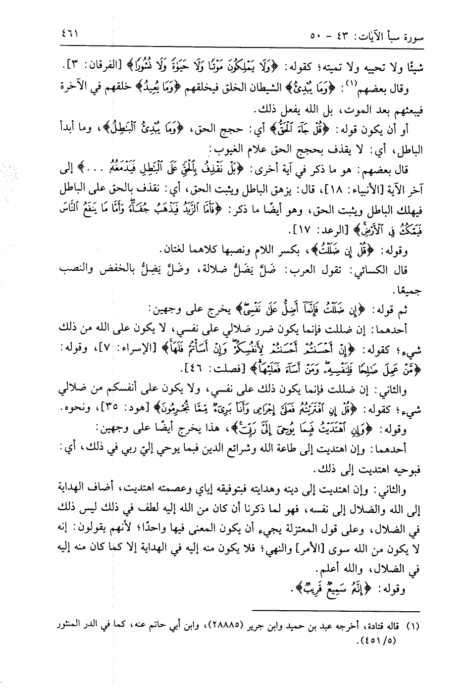 أو أن يكون قوله: (قُلْ جَاءَ الْحَقُّ) أي: حجج الحق، (وَمَا يُبْدِئُ الْبَاطِلُ)، وما أبدأ الباطل، أي: لا يقذف بحجج الحق علام الغيوب: