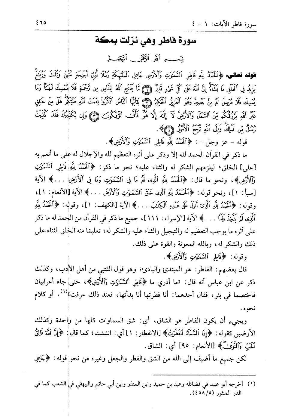 قوله - عَزَّ وَجَلَّ -: (الْحَمْدُ لِلَّهِ فَاطِرِ السَّمَاوَاتِ وَالْأَرْضِ).