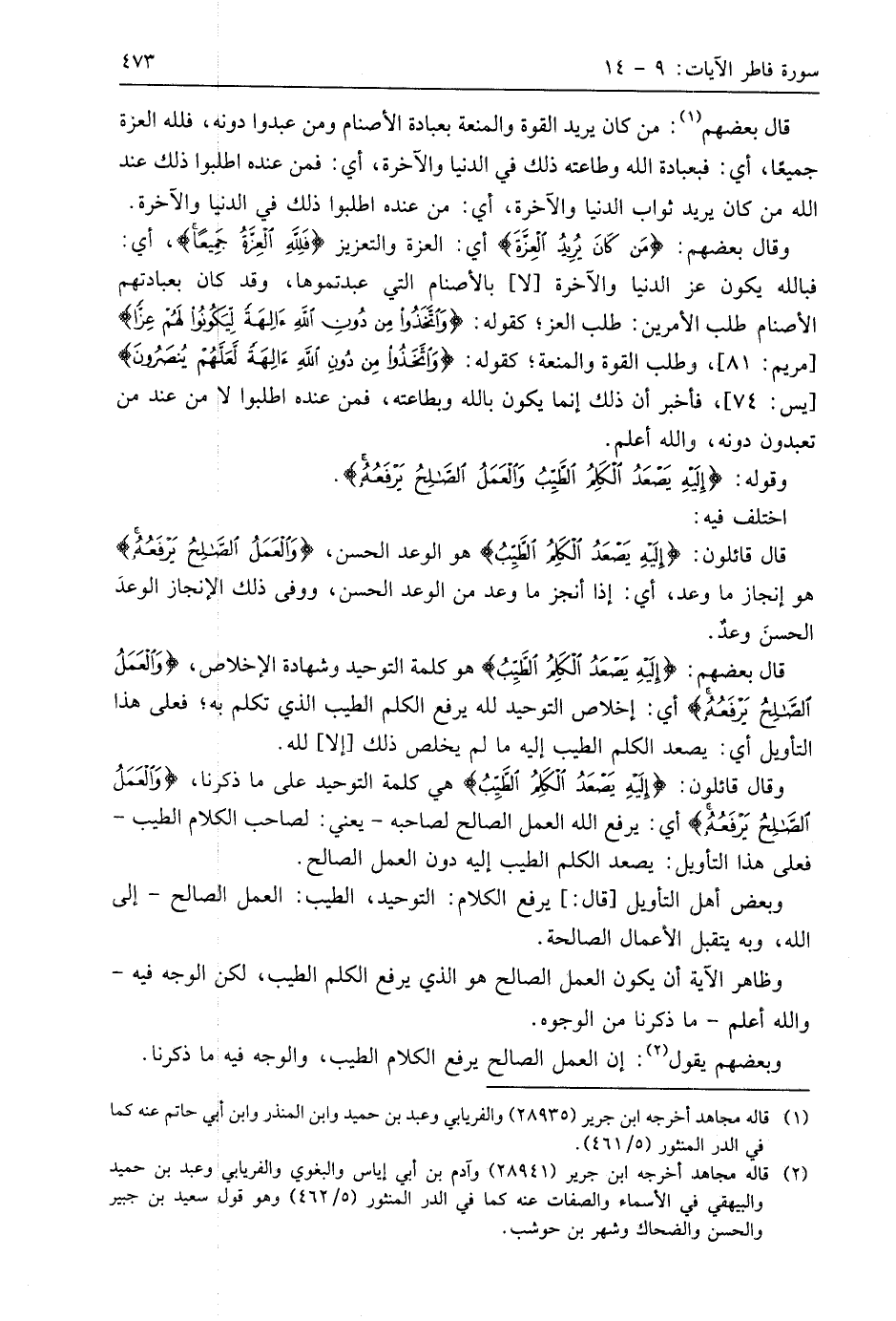 وظاهر الآية أن يكون العمل الصالح هو الذي يرفع الكلم الطيب، لكن الوجه فيه - واللَّه أعلم - ما ذكرنا من الوجوه.