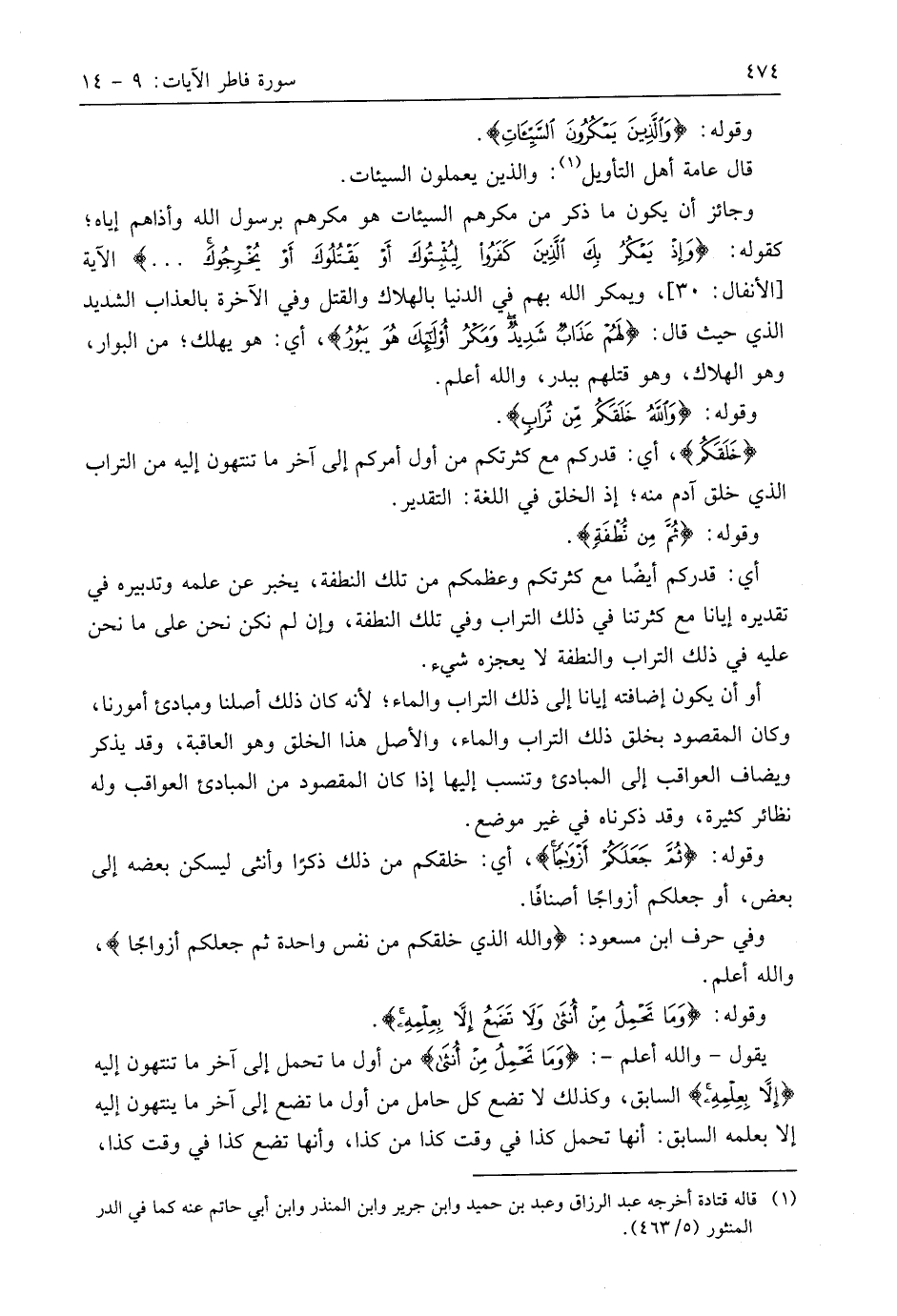 وقوله: (وَاللَّهُ خَلَقَكُمْ مِنْ تُرَابٍ ثُمَّ مِنْ نُطْفَةٍ ثُمَّ جَعَلَكُمْ أَزْوَاجًا وَمَا تَحْمِلُ مِنْ أُنْثَى وَلَا تَضَعُ إِلَّا بِعِلْمِهِ وَمَا يُعَمَّرُ مِنْ مُعَمَّرٍ وَلَا يُنْقَصُ مِنْ عُمُرِهِ إِلَّا فِي كِتَابٍ إِنَّ ذَلِكَ عَلَى اللَّهِ يَسِيرٌ (11)