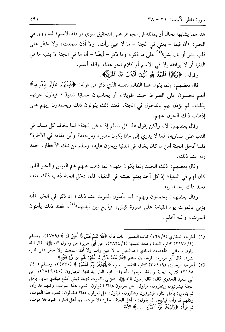 وقوله: (وَقَالُوا الْحَمْدُ لِلَّهِ الَّذِي أَذْهَبَ عَنَّا الْحَزَنَ إِنَّ رَبَّنَا لَغَفُورٌ شَكُورٌ (34)